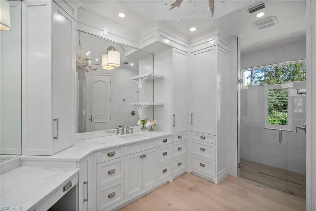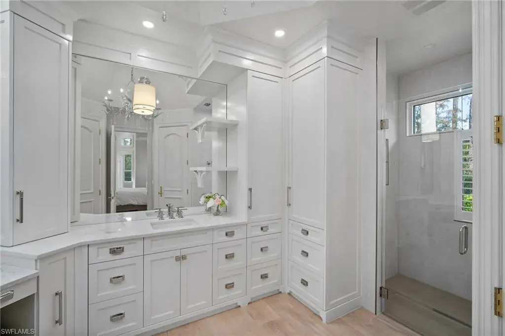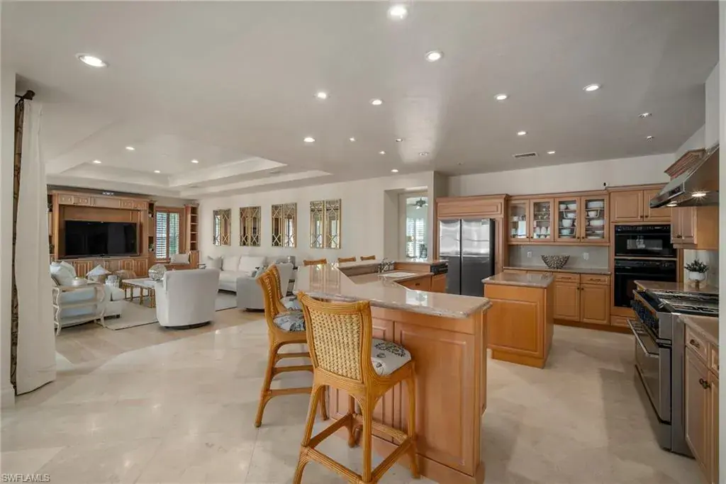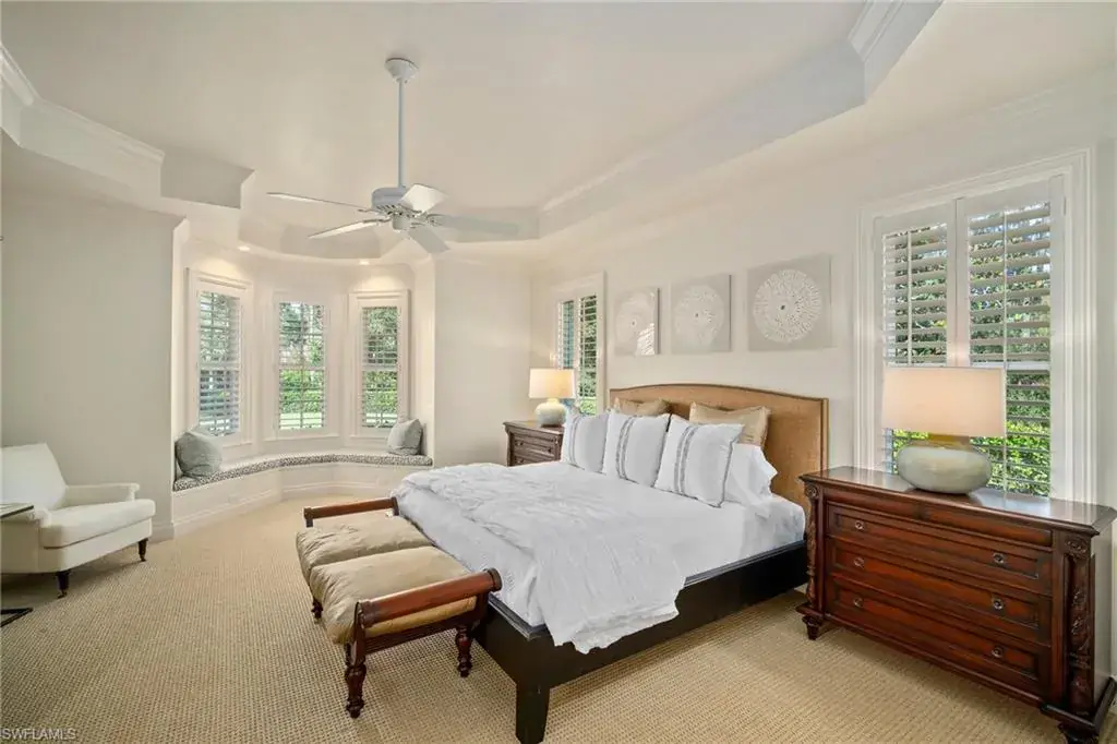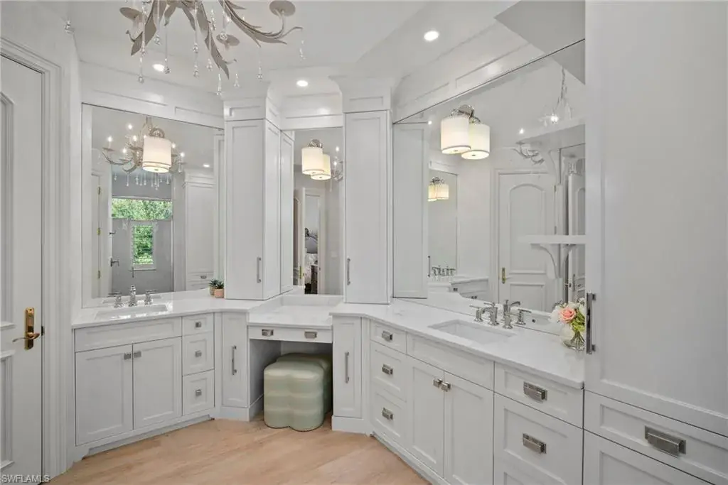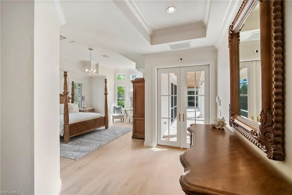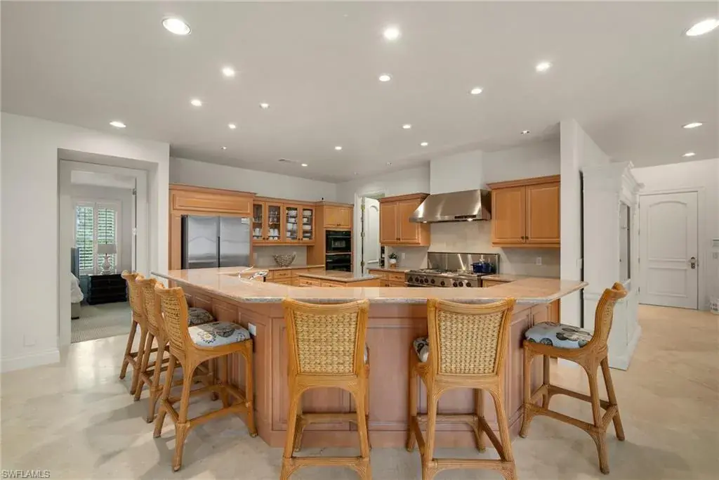 Classic Luxury meets a beautiful location and privacy! Nestled in the prestigious gated community of Naples Club Estates, adjacent to Naples National Golf Club, with only 28 private 3/4 acre homesites! This unique neighborhood is situated around man made lakes and walking paths. A classic meticulously maintained home with soaring ceilings, travertine marble, wood look tile floors, beautiful chandeliers and plantation shutters! In addition, the 4 spacious bedrooms all have full private baths, an oversized den with fireplace, living room with fireplace, dining room with fireplace, large family room and 3 half baths to include a pool bath! With over 5300 Sq Ft. there is plenty of space to entertain all of your family and friends. The open floor plan allows owners and guests to appreciate the extraordinary view throughout the living room, family room, kitchen, breakfast nook, primary bedroom and of course the lanai!! Enjoy very minute of the spectacular oversized landscaped yard and lanai with custom pool and spa! Naples Club Estates offers exclusive private gate access to the award winning Naples National Golf Club, where memberships are optional. Perfectly located only 15 minutes to downtown 5th Ave Naples and 25 minutes to the beautiful Marco Island. This IS where you want to live!