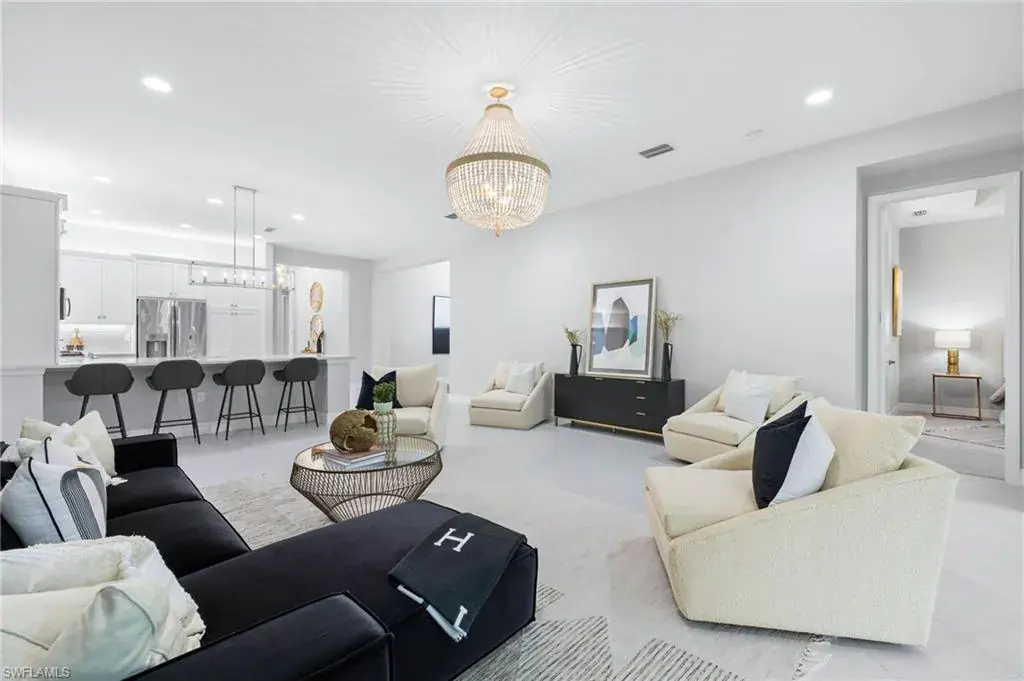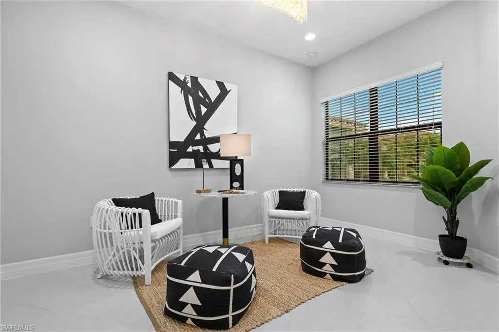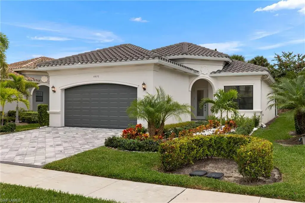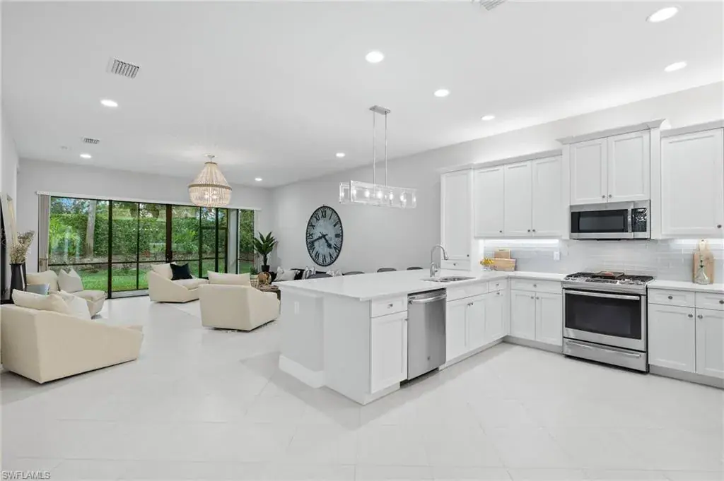 Welcome to your like new Southwest Florida home. You will enjoy living and entertaining in this spacious open floor plan. This home boasts over 2,200 sq ft including, 3 bedrooms, 2 and a half baths with touchless Toto toilets, a dining room, a den & lanai. The kitchen has plentiful quartz counters for meal prep, SS appliances, soft close cabinets with under and over cabinet lighting. This home features: gas appliances including range, dryer, water heater, a whole house water filtration system, security system, custom closets and epoxy garage floor.  StoneCreek is a pet friendly, guard gated community located 15 miles from SW FL International Airport and less than 8 miles from the beach. The amenities include: a resort-style pool, whirlpool spa, fire pit, lake overlook pier and pavilion, outdoor tiki bar with outdoor dining area, 5 clay tennis courts, 4 pickleball courts, beach volleyball court, basketball court, and a party pavilion. The Clubhouse contains: a social hall, catering kitchen, indoor sports court, several activity rooms, and a fully equipped fitness center. A full-time social director organizes clubs, activities and events for year-round fun and entertainment.