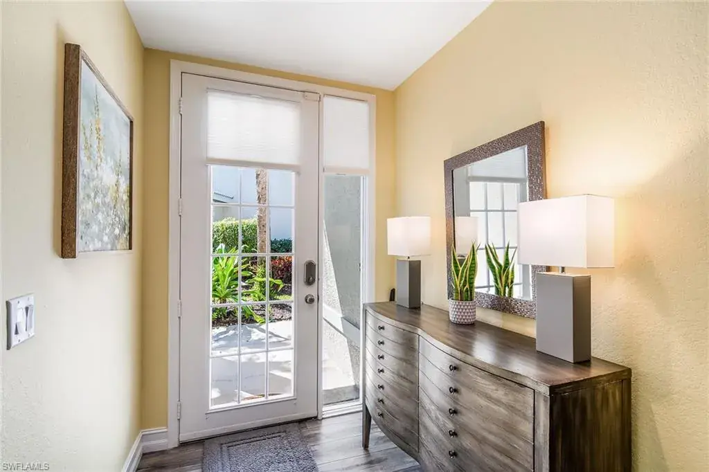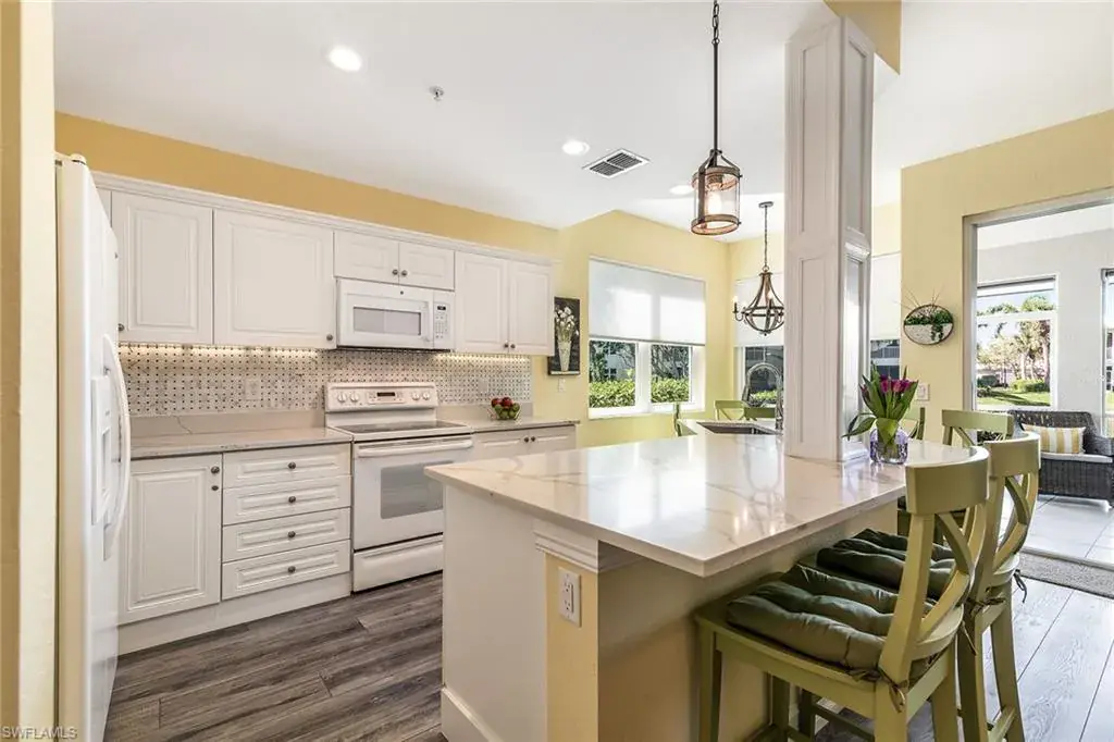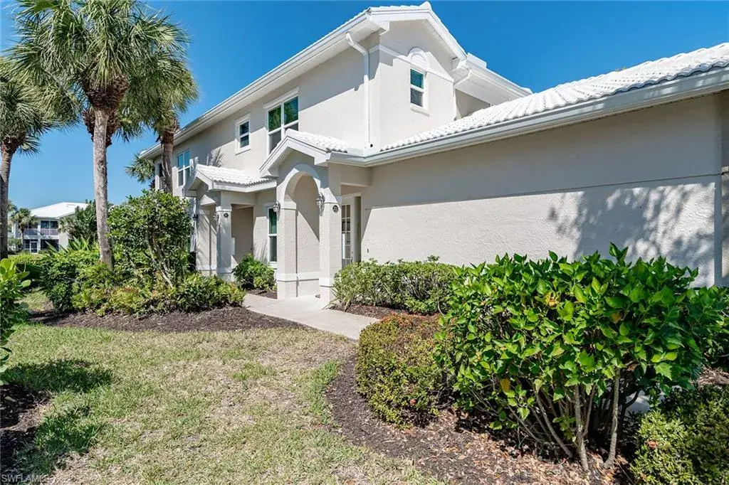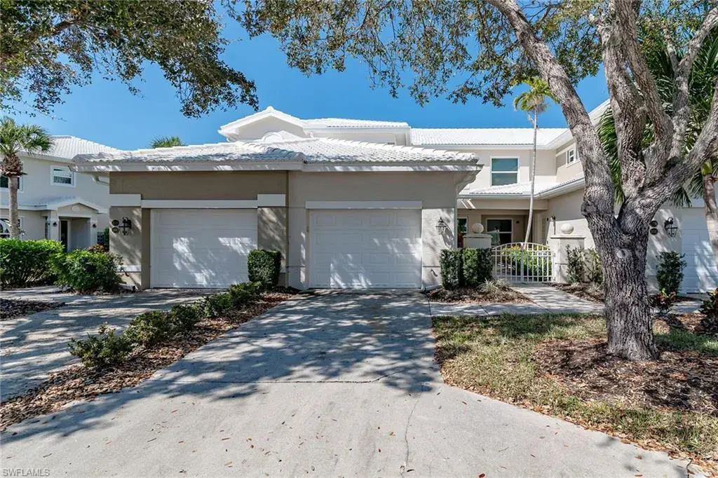 Capital CDD paid in full. This first-floor coach home is an end unit with an open floor plan — the kitchen wall removed, quartz countertops, basketweave backsplash. It is beautifully furnished, featuring lots of natural light with 3 bedrooms, 2 baths and an attached garage. The primary bedroom has a large walk-in closet, dual sinks and a shower. Enjoy western lake and fountain views and beautiful sunsets from the private and extended screened lanai. Freshly painted exterior. New roof, impact glass windows and slider. Located close to the village pool. A luxury lifestyle is ensured in this residence enhanced by the 54,000-square-foot club and spa, fitness center complete with personal trainers, fitness classes, championship golf courses, six tennis courts with competitive teams, pickleball, bocce, social activities, jogging and bike paths, casual and fine dining. Optional golf, beach and marina memberships are available. Fiddler’s Creek is located close to the Marco and Naples airports, beaches, shopping, restaurants, boating and quick access to Naples 5th Avenue.
