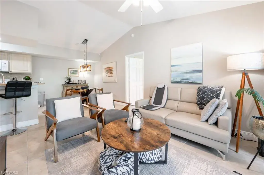 PRICED TO SELL. Great opportunity to own your own little place in Paradise. This condo is in MOVE-IN condition with PRIVATE PEACEFUL PRESERVE VIEW from the enclosed lanai. Split bedrooms, WESTERN exposure, BRIGHT and open with VOLUME ceilings. Beautiful TILE throughout, NO CARPET.  NEW A/C. This unit also includes a COVERED CARPORT.  Nicely UPGRADED bathrooms. St Croix is a GATED community in NORTH NAPLES located west of I-75, 30 minutes from Ft Myers International Airport, just a few miles to the beach, and minutes from Mercato and downtown Naples. One of the BEST SCHOOL DISTRICTS.  Pelican Marsh Elementary, North Naples Middle and the new highly desirable Aubrey Rogers High School.