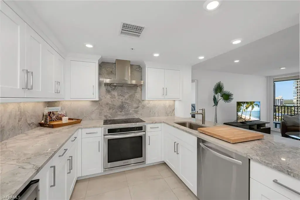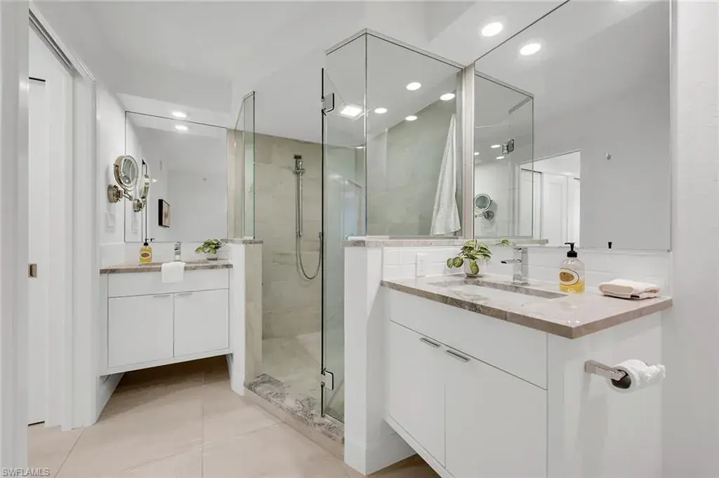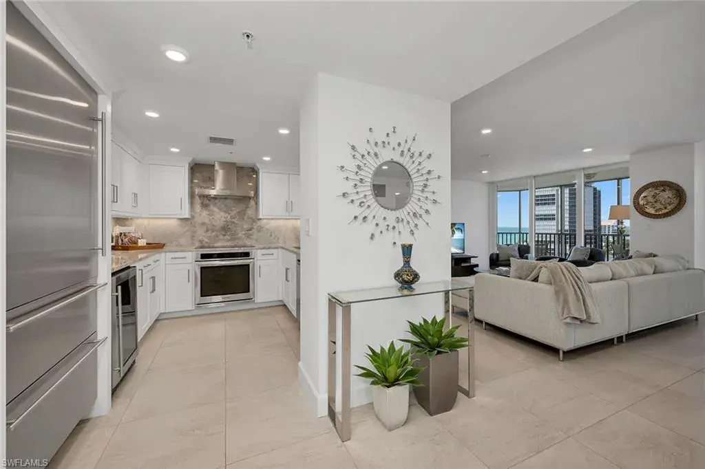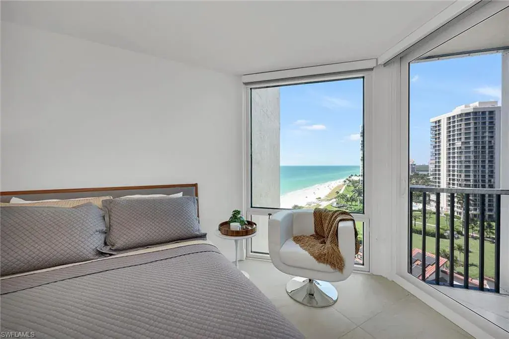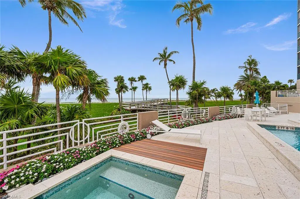 Experience beachfront luxury living at its finest in this rare three-bedroom, three-bath condominium in one of Park Shore’s most prestigious buildings. Boasting a completely remodeled floorplan that features nearly 1,600 square feet of air-conditioned living space, this is one of the nicest and most unique three beds and three baths dotting Gulf Shore Boulevard. Revel in breathtaking 180-degree views, from the sugary sand beaches of the Gulf of Mexico to the serene waters of Venetian Bay. Bathed in natural sunlight, this masterpiece of sophistication offers privacy with two guest en suites featuring floor-to-ceiling hurricane impact windows and sliders. Other features include a chef’s kitchen with an additional beverage cooler, upgraded and exquisite tile flooring throughout, pullout custom cabinetry and drawers, a massive screened lanai area for picturesque nightly sunsets, an additional air conditioned storage unit in the hallway, one deeded and covered garage space and the ability to purchase the residence fully furnished/turnkey for simplicity and convenience. Vistas is one of the most highly regarded beach buildings in all of Park Shore boasting resort-style amenities that include state-of-the-art fitness center, beachfront pool and spa, community room, caterer’s kitchen, library, beach access via private/direct boardwalk, 24-hour guard security, four high-speed elevators and four beautifully appointed guest suites. Vistas is pet-friendly, positioned along Park Shore Association’s paved Beachwalk, and within distance of the desired Venetian Village shops, restaurants and marina with boat rentals. Act now as this coastal haven and exceptional piece of Naples real estate will not last long.