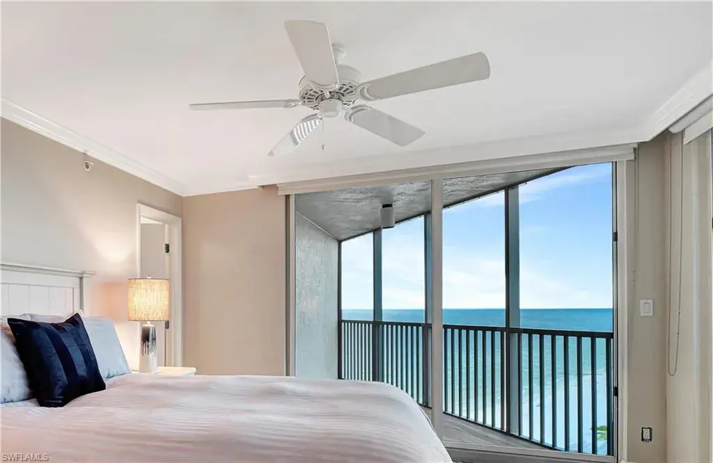 What a deal! Come see the gorgeous views of the gulf and beach to the northwest in the desirable Vistas – a fantastic building right on the beach. This stunning two-bedroom, two-bathroom condominium in the desirable Vistas building offers breathtaking views of the Gulf and beach to the northwest. The large screened-in lanai provides the perfect spot to enjoy the view in comfort, even during the hottest summer months. The entire unit was updated in 2017 and, sold furnished/turn key, is move-in ready. It features a comfortable floor plan with split bedrooms, tile flooring, and crown molding throughout. The living room hosts a built-in bookcase and kitchen and both bathrooms have granite countertops. The Vistas offers a door man, a beautiful pool and pooldeck, a large fitness center and spa, library, and a community room with adjoining kitchen plus bike and beach chair storage, as well as a car wash bay. Your parking is underneath the building and there are four elevators for your convenience. Shops and restaurants are less than a mile away at Venetian Village.