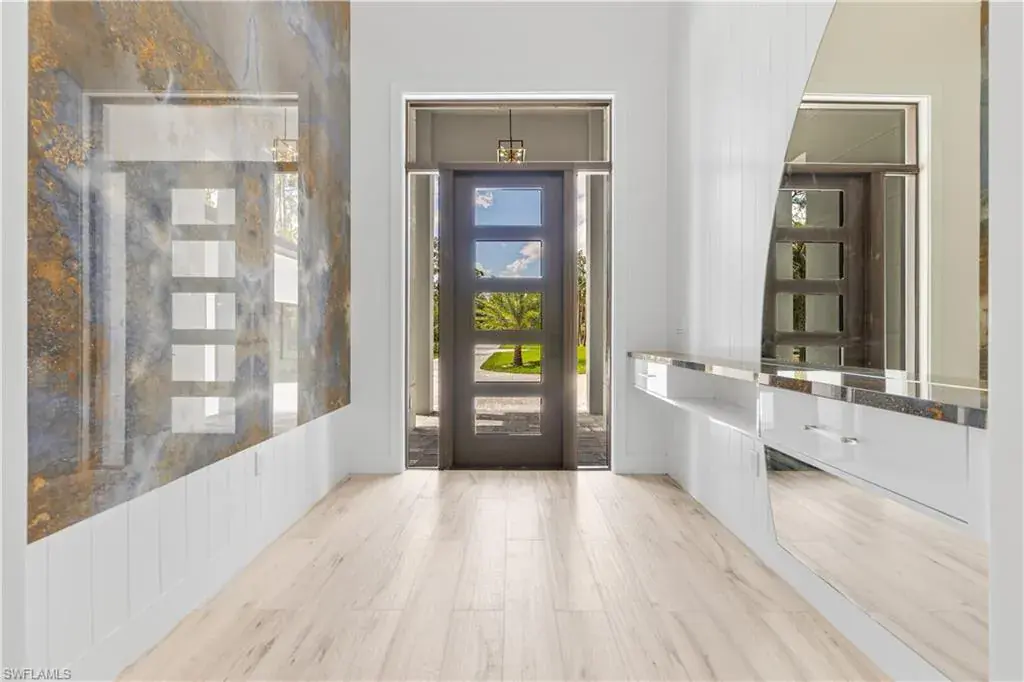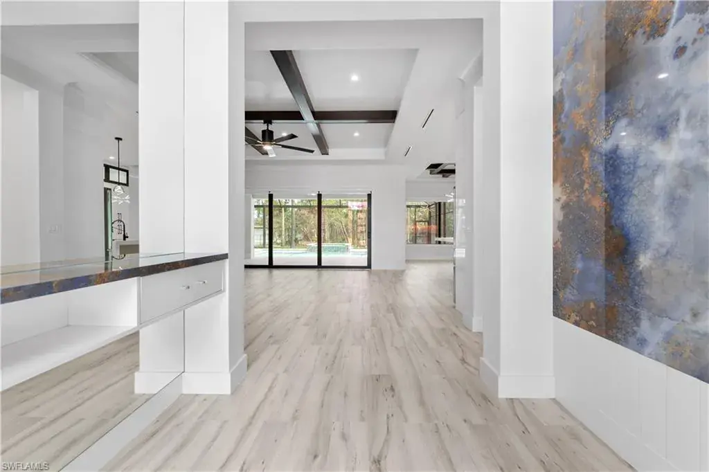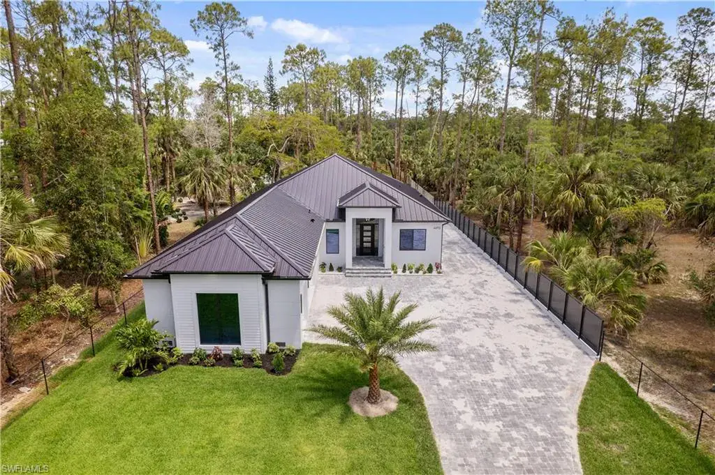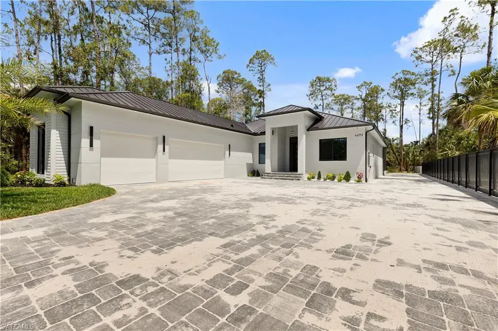 New construction with an outstanding location, about five minutes from I-75, two minutes from the Publix plaza on the corner of Pine Ridge and Collier Blvd, about ten minutes from the beach and approximately twenty minutes from downtown area. Almost 2600 sqft of living area, where you will have 3 ample bedrooms with and den and 3 baths. With an extensive upgrades list starting with perimeter fence the full length of the lot and privacy panel level with the neighbors house and motorized gate, concrete paver driveway that continues the side of the house leading to the rear of the house, stem wall foundation, spray foam insulation with stucco soffit, metal roof and best of all pool and spa which are both electronically heated and screened, stamped concrete deck. On the inside all the windows and doors are impact resistant, tile thought the entire house and the bathrooms walls are porcelain sheets, an amazing granite selection, solid interior doors, nickel gap in the tray ceilings with beams, entertainment unit in the living room with an electric fireplace and TV included, custom cabinets and closets, smart toilet in the master bath. Some of the other upgrades are entire house reverse osmosis, mini fridge and grill with hood vented out to the side of the house in the lanai along with some more upgrade, wine cooler inside the home as well, storage units in the garage, camera systems installed already.