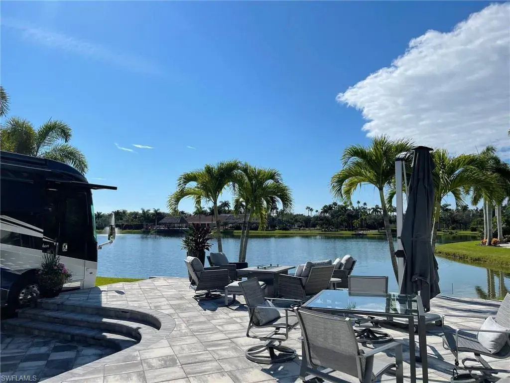 Oversized Lake front property located in Pelican Lake Motorcoach Resort. This property is move in ready with many upgrades! Recently renovated in 2021 the site is completely finished with a pavered pad and large raised patio that extends all the way to the coach with an easy step out to the large patio. This site is finished with gray color tones and different sized pavers for different areas on the lot. A custom 308 square foot coach house was built in 2021. This site boasts approximately 5662 square feet of area. The raised patio and coach house were placed to leave some space on the back side for equipment and storage out of the way. The entire site is landscaped to create great privacy and beauty for your enjoyment with night lighting as well.