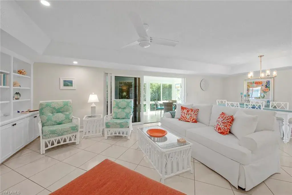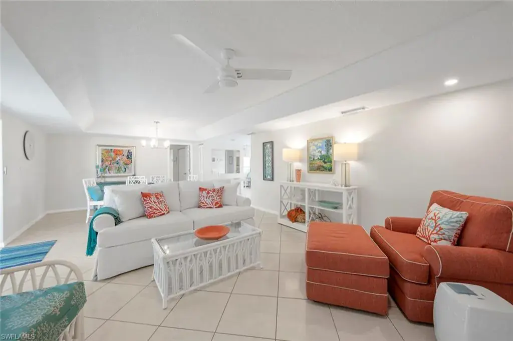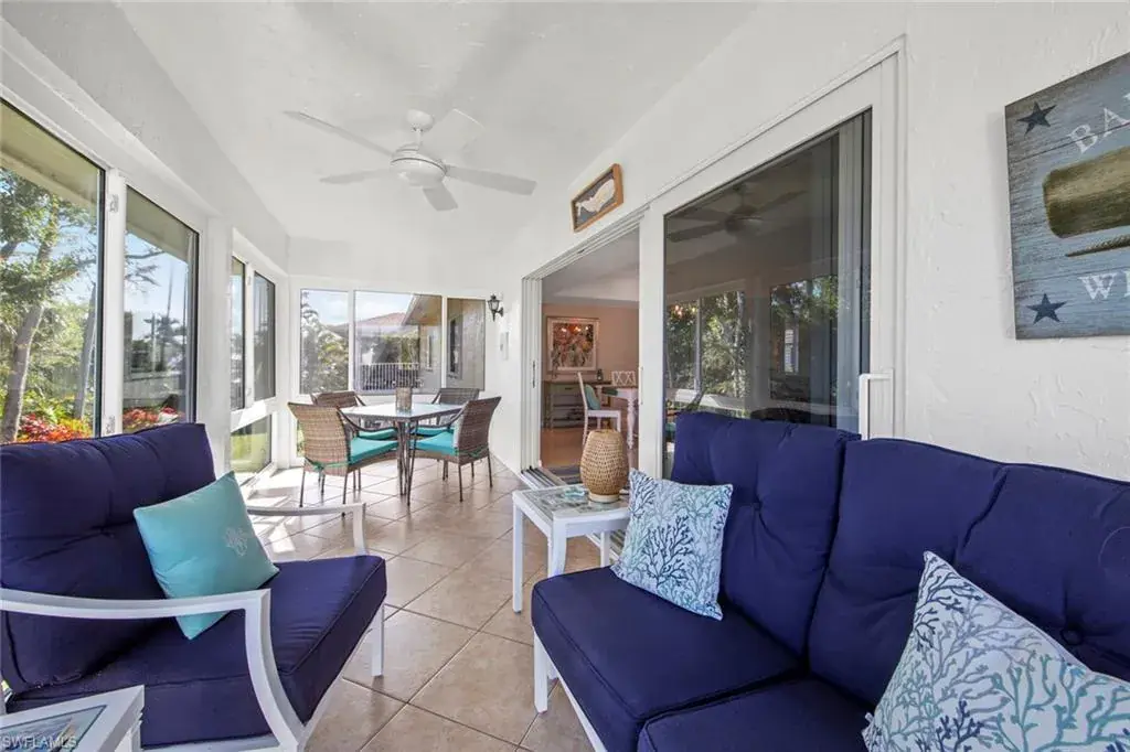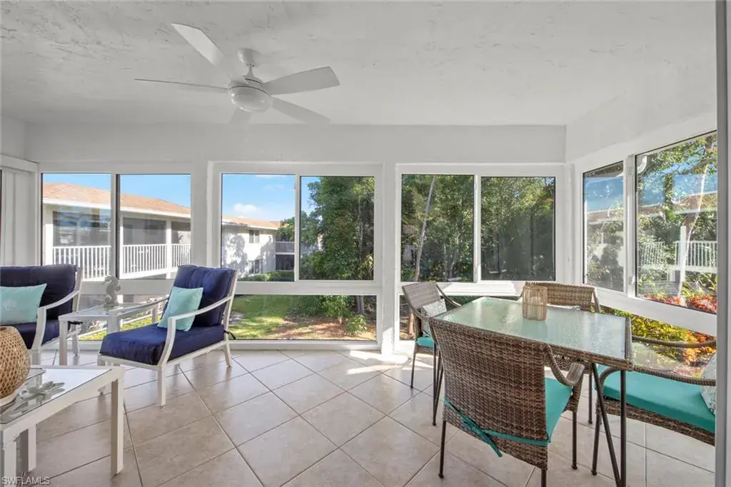 Beautifully renovated Esplanade model located in a private location with a short walk to Pro Shop, 19th Hole Restaurant, tennis, pickleball and main pool. This bright, breezy, second floor condo has beachy decor, tile floors, and a brand new glass and screen lanai that offers additional year round living. This home has 2 bedrooms and 2 baths that are split and offer privacy for your guests. Glades Golf & Country Club owners enjoy unlimited golf on two newly renovated Gordon Lewis designed courses with paspalum grass, new irrigation and sustainable Florida landscaping. Other amenities include pickleball, tennis, nine swimming pools, 19th hole Restaurant, Pro Shop, and clubhouse with activities throughout season. All of this just 10 minutes from downtown 5th Ave shops and restaurants and the beautiful beaches of Naples. Exclusions: Barnstable Harbor whale over loveseat on lanai, whale tails, silver bowl on foyer table, turquoise ginger jar in kitchen.