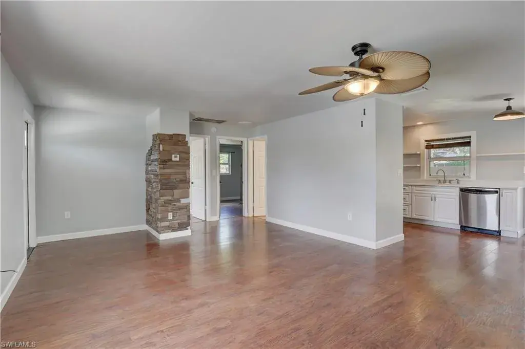 Discover this fantastic starter home, conveniently situated near downtown shopping, exquisite dining, and the pristine beaches of Naples. Step inside to find a beautifully updated living space adorned with laminated wood flooring throughout. Both the kitchen and bathrooms have been tastefully renovated to offer modern comfort.