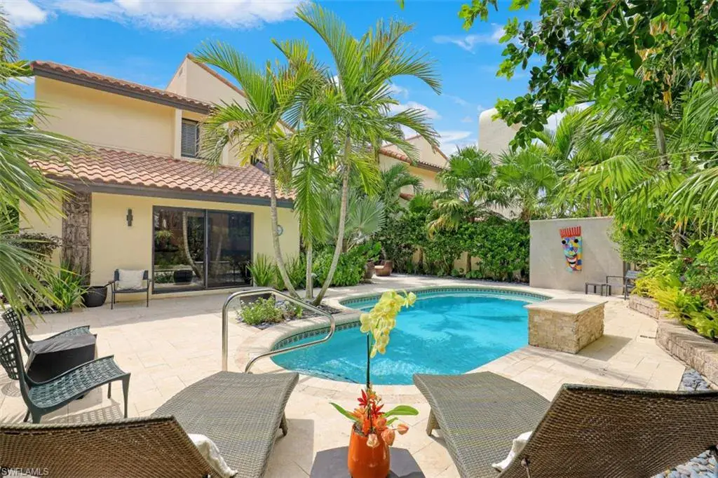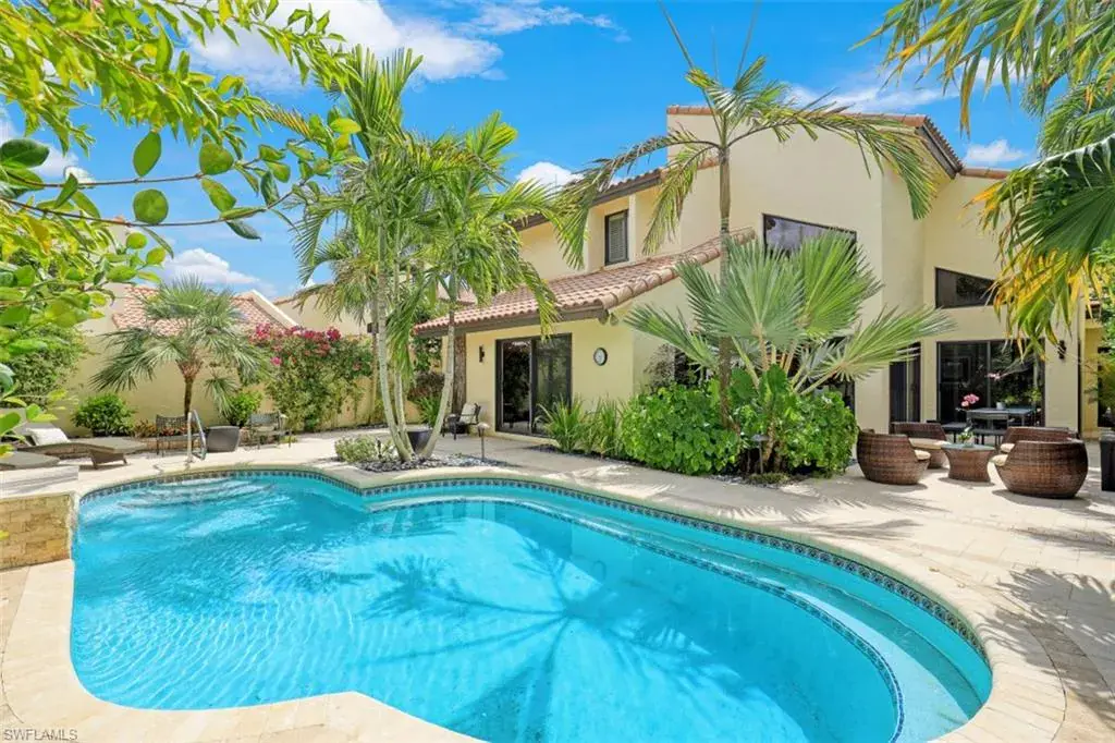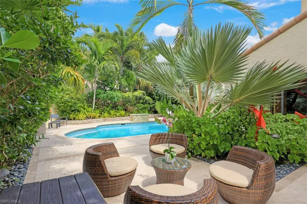 V7226 – Tucked in its own tropical oasis w/in the prestigious Pelican Bay neighborhood is a home that blends clean lines and timeless styling, The walls of glass let in copious amounts of light and nature creating an ideal entertainment home. The property features exceptional timeless finishes that make this home one of a kind. The primary suite is highlighted by walk-in closets and a bath with an oversized shower and double vanity. The kitchen is accented by high end appliances including Miele coffee/espresso system and Bosch dishwasher. The backyard is a sanctuary with an infinity edge water feature surrounded by lush landscaping. The interior/exterior design encompasses all the unique products and finishes to make it an ideal setting for living the “Naples Lifestyle”. Las Brisas is directly across from the Pelican Bay Country Club and a short bike ride to the famous Pelican Bay sugar sand beaches. Centrally located just minutes away from exquisite dining and upscale shopping at both downtown Naples 5th Ave or Mercato’s night life and shopping. Act quickly so not to miss your piece of Paradises.