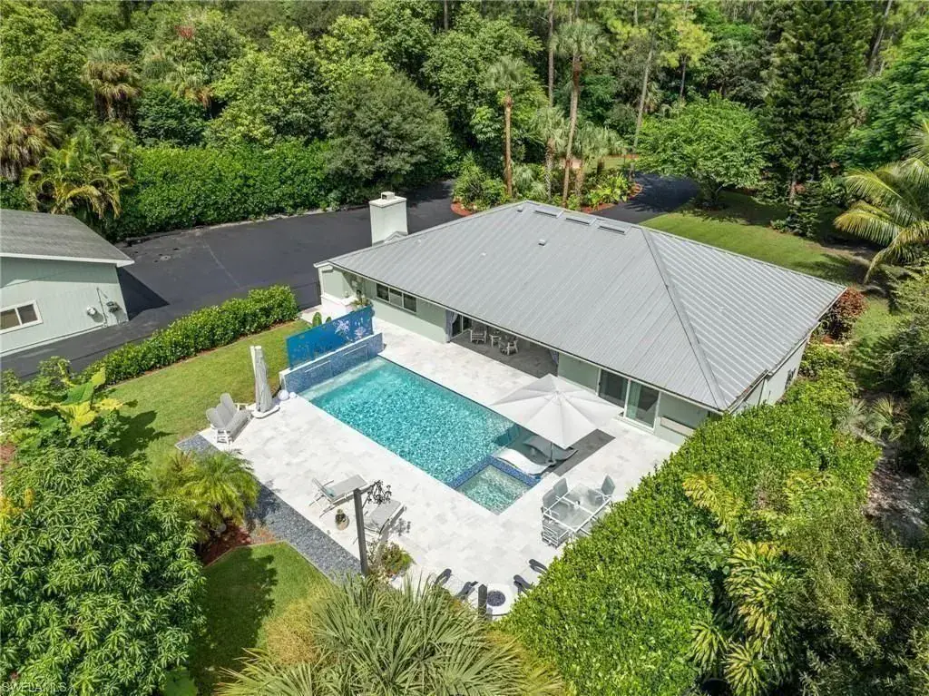 Luxury and charm are combined with an extensive attention to detail to deliver this stunning home in the exclusive Logan Woods. An RV, car collector or boater’s dream home featuring a nearly 1,700sf air conditioned and insulated detached garage built to the highest standards with NEWER ROOF. Situated on a 2.72-acre Southern exposure lot, this home boasts 3 bedrooms, 2 bathrooms, a 1-car attached garage and a 4-car detached garage. Recently completed custom saltwater heated and cooled pool with spa, sun shelf, water fountain and aluminum coral decorative panel. Lifetime guarantee on pool shell and pebble tech finish. An extensive amount of mature landscaping and fruit trees can be found throughout the property including premium St. Augustine sod. IMPACT WINDOWS AND DOORS AND NEWER METAL ROOF for complete peace of mind and protection. Immediately upon entering the home you are greeted with an inviting foyer that leads you to the open living area. Stunning wood-look tile is fitted throughout the entire home. A true focal point, the deluxe kitchen is fitted with real wood cabinetry, stainless steel appliances, built-in wine fridge and granite countertops. A real wood-burning fireplace with stone accented wall can be found in the main living room. The completely updated master bathroom offers a new dual sink vanity with granite countertop, custom shower with multiple heads and an oversized walk-in closet with built-in cabinets. Perfect for entertaining, the outdoor pool area is finished in a premium leathered travertine deck and accented with beautiful beach pebble stone. Other notable upgrades include solid core doors throughout, upgraded baseboards and crown molding, LED recessed ceiling lights, recently asphalted driveway, an anchored ShelterLogic car port, detached “she shed” and so much more! Enjoy the serene privacy and freedom of your own private land all while still being in the center of town and minutes away from all that Naples has to offer. Zillow 3D walk-through and floor plan available!