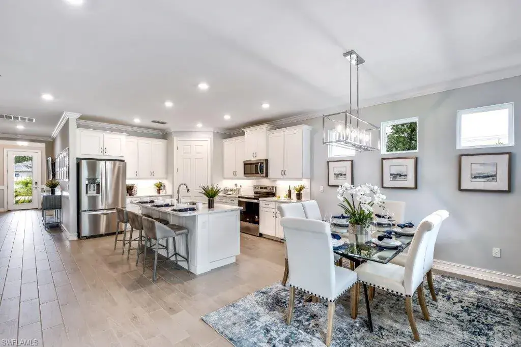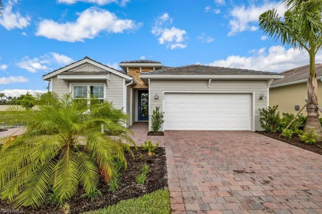 This fully upgraded new construction home features wood plank tiled floors and a full smart home system. In the chef’s kitchen, there are stainless steel appliances, upgraded cabinets with accent lighting, and a beautiful quartz countertop. Spacious master bedroom, which is located on the main floor offers luxurious his and hers walk-in closets, and a master bathroom with double sinks. The living room/ dining room area opens up to a beautiful outdoor Lanai. Three other bedrooms to use as you please with impact windows throughout the entire house. Laundry room with cabinets and upgraded high-efficiency washer and dryer. Roomy two car garage with easy access to laundry room. This gated community includes a resort style clubhouse pool with lap lanes, billiards room, pickleball courts, bocce ball courts and sidewalks. Easy to commute, minutes away from 5th Ave. and Marco Island! *Pictures are of “Delray” model located at the entrance of the neighborhood, the home pictured in this listing is the model and NOT the actual home for sale, finishes will be different*