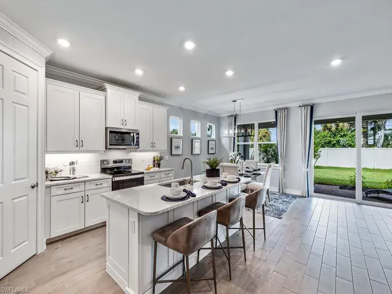 Currently under construction with an estimated completion date in April! This stunning Delray Plan with Pool and Spa boasts a spacious 3 Bedrooms+ Den, 2 Bathrooms, 2-car Garage, Screened-In Lanai with Full View Screens, and is sited on a premium west facing lot with lake views! No detail has been overlooked in this impeccably designed 2034 total sq ft DR Horton home with unrivaled craftsmanship and the finest finishes, including a Smart Home package, Impact Resistant Windows & Sliders, and ample paver details including: driveway, entry, and front walkway. This plan is open, airy & filled with all day natural light that is perfect for entertaining with the soaring ceilings and an expansive Gourmet kitchen replete with Quartz countertop, top-of-the-line Stainless-Steel appliances, Pantry, & beautiful Custom Designed Cabinetry with soft close hinges. Amenities at Tamarindo feature a stunning new Community Clubhouse with resort style Pool, beautifully appointed Social and Recreation Rooms, Catering Kitchen, Billiards, Fitness Center, Pickleball and Bocce. Perfectly situated with a location that is central to all that Naples has to offer. Also featuring, low HOA fees, it’s time enjoy the epitome of Southwest Florida lifestyle at Tamarindo!