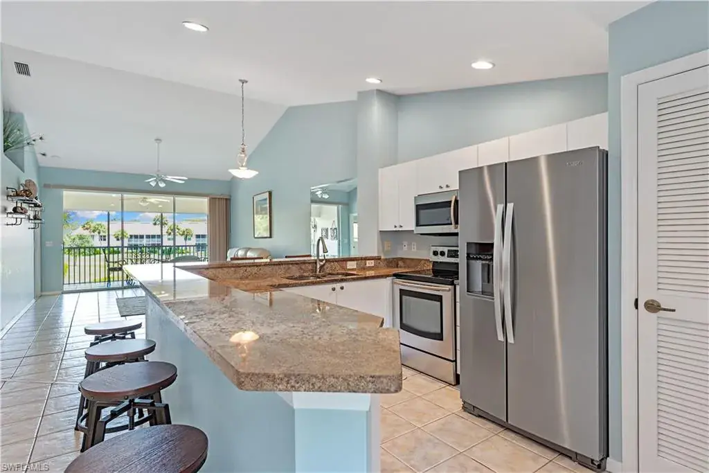 Fabulous WATER VIEW from this light, bright, 2nd floor condo. This well-maintained 2 bedroom + FLEX space, 2 bath unit has an open floor plan and high ceilings. The kitchen is large and well equipped with lots of storage cabinets, counter space and counter seating. Enjoy the water view and fresh air while relaxing on the large screened-in lanai. Lakeview is a PET-FRIENDLY community. This unit is being sold partially furnished for your convenience. Parking is easy with 1 assigned carport space and 1 assigned guest space. Carlton Lakes is a GATED community with beautiful resort-style amenities including a large Clubhouse pool, exercise room, tennis, bocce, play area, walking/biking paths and so much more. The Lakeview neighborhood is nestled within Carlton Lakes and also has its own private swimming pool. Conveniently located to I-75, SWFL International Airport, Mercato, Waterside Shops, Seed to Table, and many conveniences. Carlton Lakes is a 245-acre community comprised of single-family and multi-family homes. There are 16 lakes and multiple native preserves. A great place to call home!