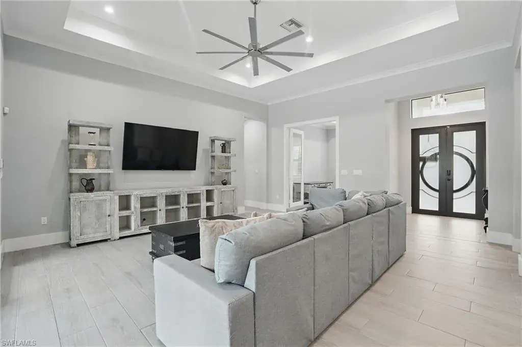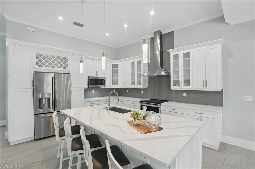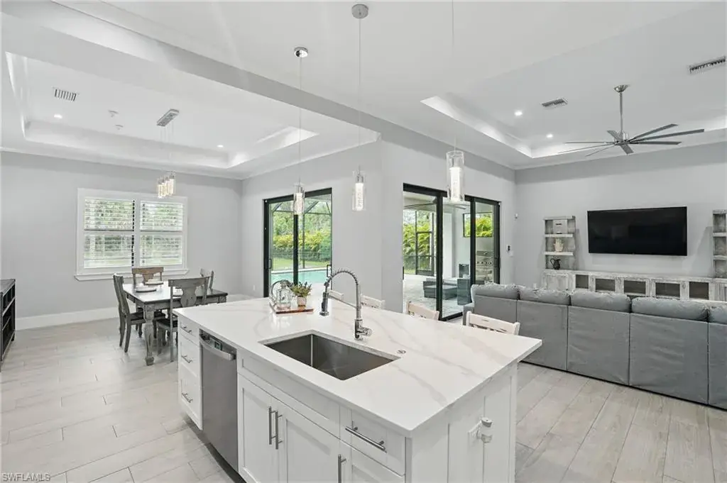 TOTAL PEACE OF MIND: IMPACT WINDOWS & DOORS, 2019 NEW CONSTRUCTION HOME, 3 CAR GARAGE, WHOLE HOUSE RO, TESLA CHARGER, 2025 POOL PUMP. Step into your private paradise with this exquisite 4-bedroom plus den, 3-bathroom pool home nestled on 2.5 fully fenced acres in NAPLES, Florida. From the grand foyer entrance to the spa-inspired primary suite, every detail exudes luxury and comfort. The interior boasts plantation shutters, California closets in every room, crown molding, tray ceilings, recessed lighting, and designer crystal light fixtures. The oversized den with French glass doors offers the perfect space for a lounge or home office. The gourmet kitchen features quartz countertops, a glass tile backsplash, GE Profile appliances including a double convection oven and French door refrigerator, 42″ soft-close cabinets with a built-in wine rack, and a whole-house reverse osmosis water system. Enjoy the oversized laundry room with a sink, cabinets, and bonus closet. The 3-car garage includes an epoxy floor, overhead storage, and a Tesla charger. Safety and smart tech features include impact windows throughout, a whole-house security system, and Ring cameras. Outside, entertain in style with a full outdoor kitchen equipped with a grill and sink, and relax in the heated resort-style pool and spa. This home perfectly blends elegance, functionality, and Florida lifestyle living. Dont miss out, schedule your private showing today!