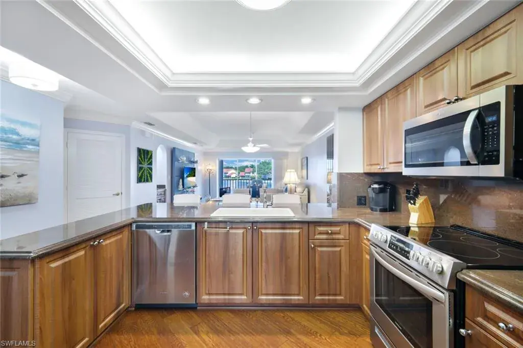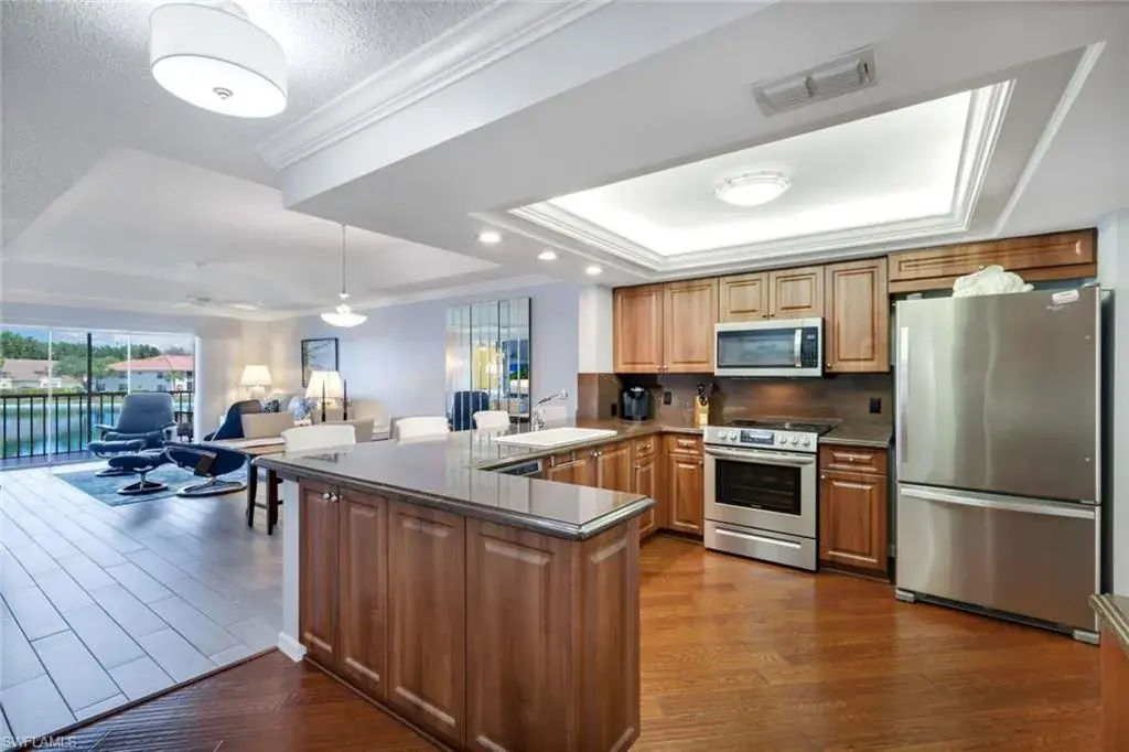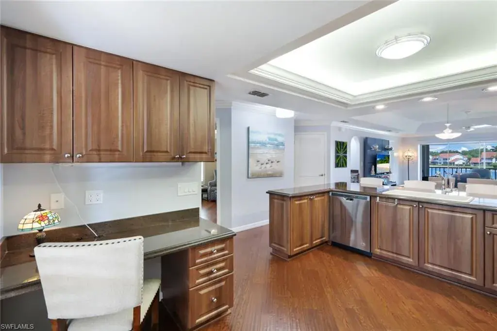 Be prepared to be amazed by the extraordinary long lake view as you enter this well-maintained condo.  The kitchen has been remastered to include newer cabinetry, granite, pantry, dedicated desk area and hardwood flooring.  There’s Plank tile throughout the living & bedroom areas along with plantation shutters.  Newer bathrooms with walk-in showers and seamless glass enclosures.  There is a deeded partially enclosed carport and private secured storage.  The Colonies features 2 pools, 1 spa, and easy walking distance to the master association pool.  There is a lakeside walking trail that winds along Berkshire & Belville Lakes.  Enjoy an active pickleball and/or tennis community.  Berkshire Commons offers Publix, First Watch, Walgreens, Banking, Mobil station, drive-thru Starbucks, and other dining opportunities.  Athletica Fitness & Aldi’s are also nearby.   Berkshire Lakes is a central Naples location and close to all the good things Naples has to offer.    …and The Sunsets are Free!
