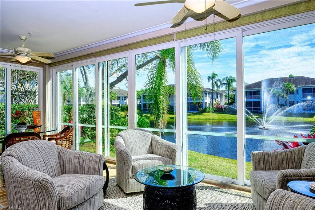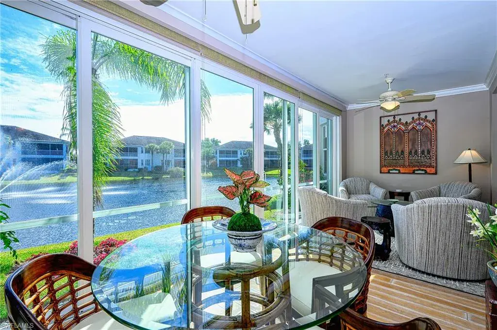 This home is open, so light, and so spacious.The Florida Room addition has changed the space entirely. It feels like a “home” not a “condo”. And, there is no other like it. The location is private and quiet, tucked away in the front, on the lake with lots of light from windows in this end unit. With hurricane impact windows throughout and screens or glass, your choice, it is a glorious safe place.. Bathrooms are updated and kitchen has custom cabinetry, osmoses at the sink, and a lovely kitchen eat in area with lots of storage under the bay window bench with a view of it’s own. The master is large and comfortable with a beautiful view. Two other bedrooms are separated from the master for privacy both with lots of sunlight from an outdoor atrium and adjacent to bathroom 2. Windstar is 7 minutes from Old Naples, has a 72-slip marina with slips for purchase or lease, an exclusive in Naples, a Tom Fazio 18-hole championship private membership golf course, and a private fabulous quiet shelling Windstar beach at Keewaydin with daily shuttle. The newly remodeled Windstar Clubhouse is exquisite and offers members full amenities.