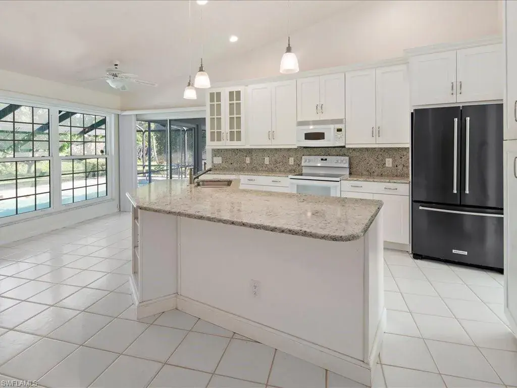 Looking for a home in a mature neighborhood just minutes from downtown Naples? This is the one! Priced to find value, this home was welcoming curb appeal. With over a third of an acre, you have space between you and your neighbors to take in the natural light in every room. Enjoy high ceilings in this split floor plan, 3 bedroom, 2 bath home. The updated kitchen features white cabinets, granite counters, and a spacious island ready for homework or dinner with friends. The expansive heated pool and beautiful wooded view with a canal in the backyard makes it the ideal peaceful retreat. There is plenty of yard for pets or outdoor activities. Save on money with a well irrigation system. The large lanai has plenty of space to entertain family and friends. Other highlights include an impact-resistant garage door along with manual hurricane shutters for extra protection. The plantation shutters and vibrant Florida palette make this an ideal seasonal home or investment property. Queens Park is a hidden gem with annual dues of $324! Close to downtown Naples, world class beaches, shopping, and more. A-rated schools and nearby grocery and community offerings make this too good to pass up.