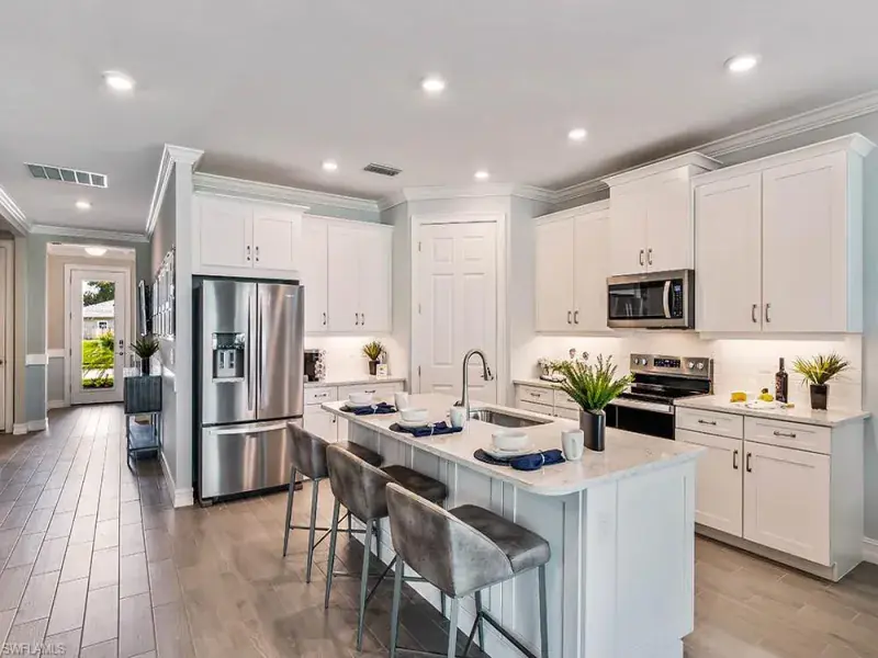 H11884 – Currently under construction! This stunning Delray Plan boasts a spacious 3 Bedrooms+ Den, 2 Bathrooms, 2-car Garage, Screened-In Lanai, and is sited on a premium west facing lot with lake views! No detail has been overlooked in this impeccably designed 2034 total sq ft DR Horton home with unrivaled craftsmanship and the finest finishes, including a Smart Home package, Impact Resistant Windows & Sliders, and ample paver details including: driveway, entry, and front walkway. This plan is open, airy & filled with all day natural light that is perfect for entertaining with the soaring ceilings and an expansive Gourmet kitchen replete with Quartz countertop, top-of-the-line Stainless-Steel appliances, Pantry, & beautiful Custom Designed Cabinetry with soft close hinges. Amenities at Tamarindo feature a stunning new Community Clubhouse with resort style Pool, beautifully appointed Social and Recreation Rooms, Catering Kitchen, Billiards, Fitness Center, Pickleball and Bocce. Perfectly situated with a location that is central to all that Naples has to offer. Also featuring, low HOA fees, it’s time enjoy the epitome of Southwest Florida lifestyle at Tamarindo!