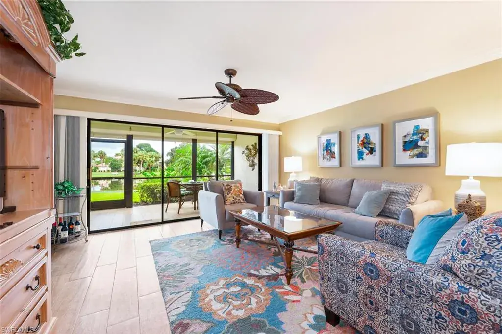C7190 – Welcome to The Retreat, an enclave of condominium homes set among tree- lined streets, walking paths, and lakes within the community. Gated and secured by 24 hour guard staff. This property has been completely updated and shows beautifully with granite kitchen surfaces, contemporary tiled floors throughout, updated and handsome baths, new baseboards and trim. End unit brings in light from the south and west, and offers views out to the lake just beyond the screened lanai. The floor plan includes split bedrooms and en-suite master bath, plus a den which can be used for extra guests. Nice sized laundry room with wash tub, and standard side by side washer and dryer. Also, there is a detached garage just steps from the front door! Nothing needs to be done to this condo for move-in ready buyers. Great location in North Naples with plenty of shopping and dining just outside the gates! Priced with furnishings included!