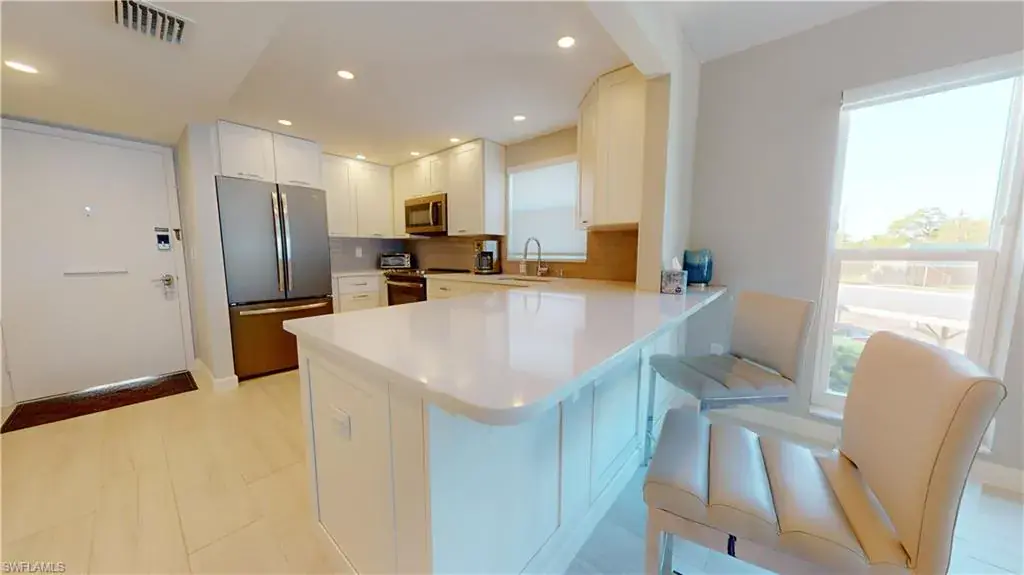 This light and bright corner unit gets lots of natural light and includes one covered parking space, new hurricane glass windows, *Also Enjoy $80k in newer recent renovations (2020) and all-new high end furniture 2021. The unit features wood-look ceramic tile floors throughout, newly carpeted bedrooms- 1 covered parking spot, and abundant guest parking. Enjoy morning or evening walks with Golf view around the newly paved High Point Circle (basically a walking track now)