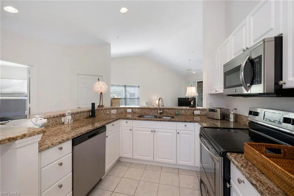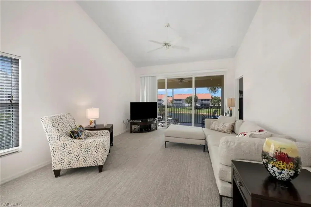 End south facing lakeview listing with 2 bedrooms and den. Condo was freshly painted in a crisp white allowing the new owner to use their creativity to decorate.  All contents have been removed since photos were taken. Condo’s on this street can be 12 times per year. Lovely south facing view over the lake.  New roof installed in 2023 and with impact resistant windows throughout. Appliances are all stainless. A short walk to the community pool and the clubhouse with fitness center, 60′ lap pool, spa, tennis courts only steps across Carlton Lakes Blvd from the Osprey Isles community pool. The community has been beautifully landscaped. Enjoy watching the shore birds while enjoying your coffee or cocktail from your lanai off the living room. Worthington Lane is on the Naples Community Hospital Electrical grid which keeps electrical outages at a minimum.  It is located behind Seed to Table on Livingston and Immokalee.  Publix is next door.  The community is within minutes of Naples sugar sand beaches, shopping Mercato, and loads of other businesses and restaurants.  Home-Tech Home Warranty in place and can be transferred to new owner.