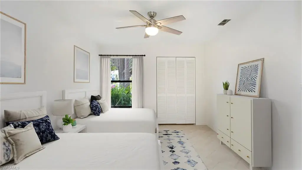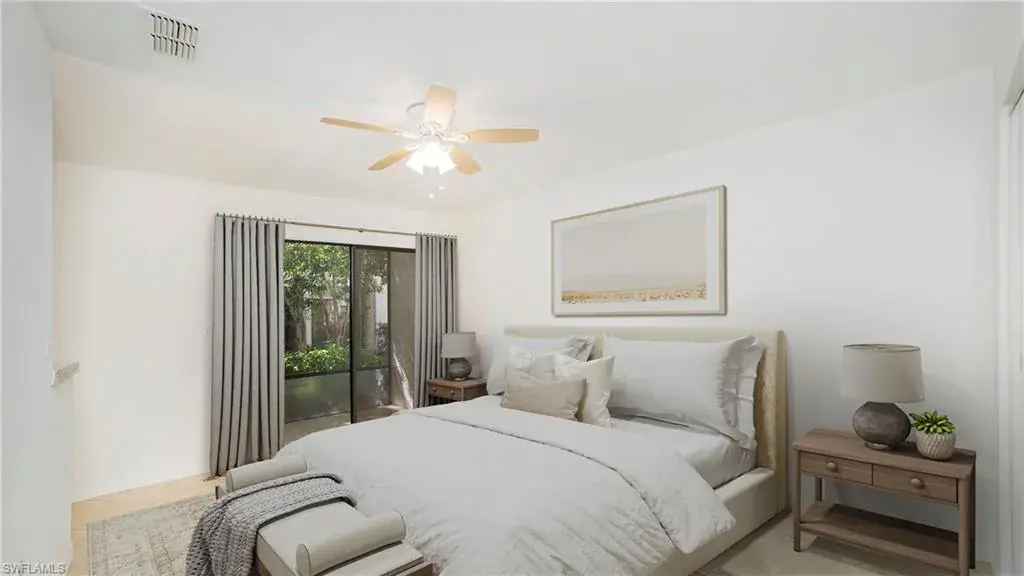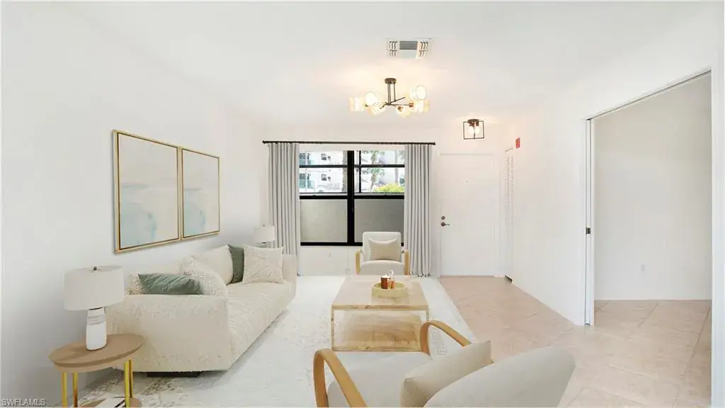 Looking for your opportunity to live in one of the most desirable areas in North Naples? Look no further! This 2 bedroom/2 bathroom condo in Emerald Woods is perfect as a primary residence, vacation home, or investment property, and is PRICED TO SELL. Step inside this first floor unit (no stairs!) to find an open floorplan, updated countertops in the kitchen, and a spacious main living area that flows out onto a screened-in lanai. The large primary bedroom features an ensuite bathroom with a new glass surround shower and rain showerhead, walk-in closet, and a second private screened-in lanai. Both lanais have been re-framed/screened and are surrounded by mature trees and tropical landscaping, providing a serene setting for relaxing. The second bedroom is accessible through pocket doors from the main living area, optimizing space and flexibility. Emerald Woods is a vibrant community offering many social activities, and this unit is located directly across from the clubhouse, community pool, and spa. Surrounded by nature but close to world-class amenities, you can walk or bike to Mercato, Whole Foods, Pelican Bay Community Park, and Vanderbilt Beach. Don’t miss your chance to own this fantastic condo in an unbeatable location!