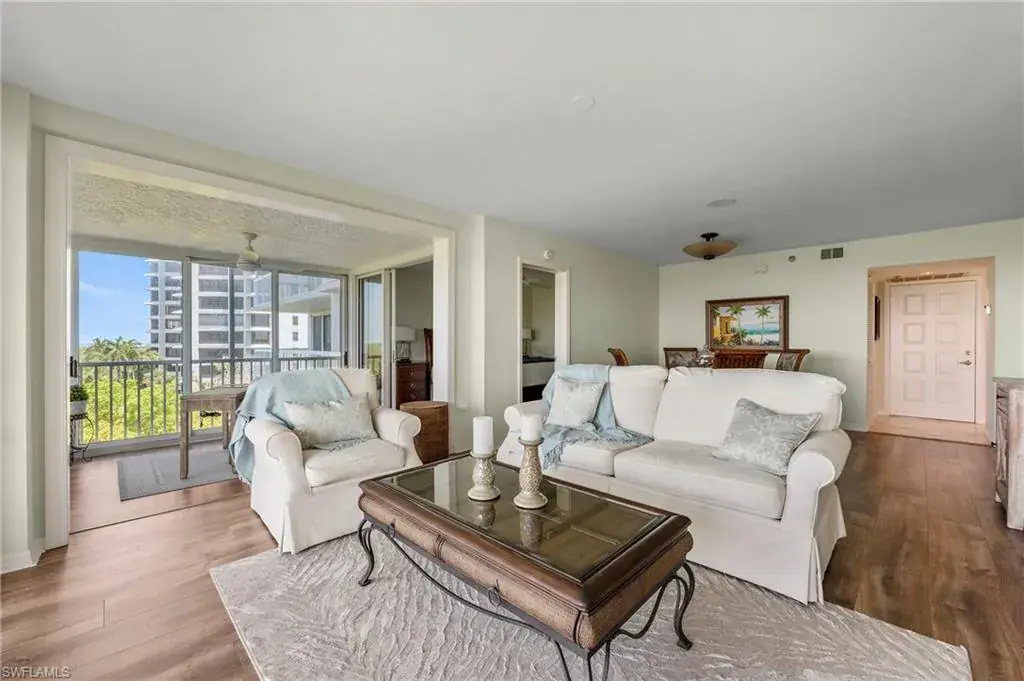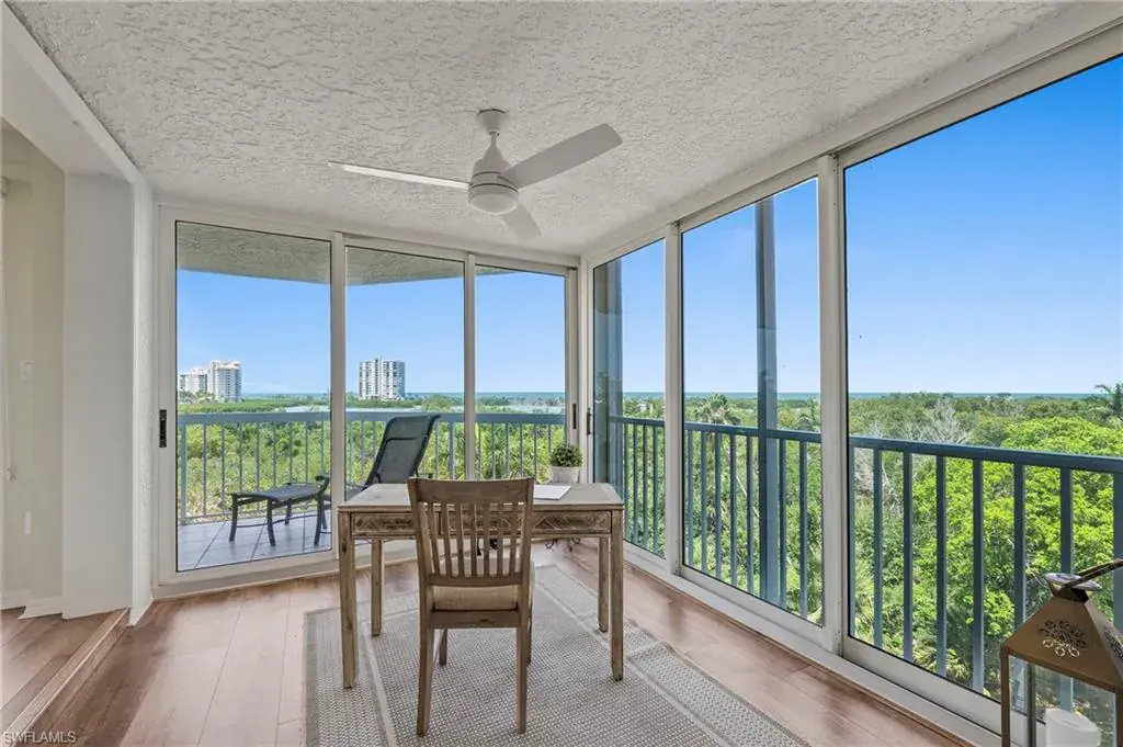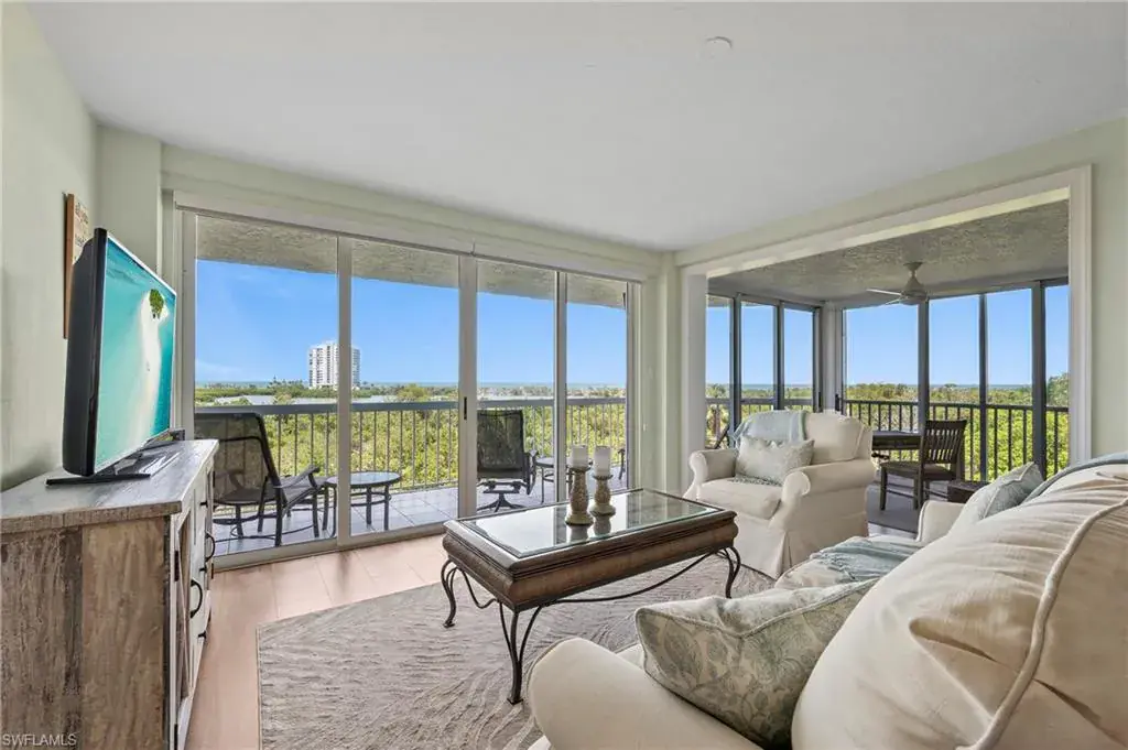 PRICE LEADER FOR PANORAMIC VIEWS GALORE? YES! PHOTOS DO THE VIEWS JUSTICE? ABSOLUTELY NOT! The unexpected bay and gulf views from this 4th floor casual-coastal inspired condo are mesmerizing, and cliche as it sounds, must be seen to be appreciated. This 2-bedroom, 2-bath plus den-flex space condo offers a great room concept with split bedrooms, eat-in kitchen, glass-enclosed lanai off the master retreat (den-flex space) and an open air balcony with views so magnificent it is seemingly perched above the shimmering waters of Clam Bay. Offered turnkey furnished, this condo is perfect for a vacation get-away for its new owner, or future tenants as it has a strong rental history. In recent years the low density boutique-like St Tropez underwent renovations to its lobby and common area amenities (pool, tennis courts, social room, & fitness) transforming it into a welcoming tropical oasis; all of this plus the world-class private beach clubs with full service restaurants and bars, beach attendants, walking/biking paths, two racquet facilities, use of kayaks/canoes/sailing vessels, staffed fitness center with group classes, spa and wellness center, optional golf membership and ideal location for which Pelican Bay is treasured! Welcome home.