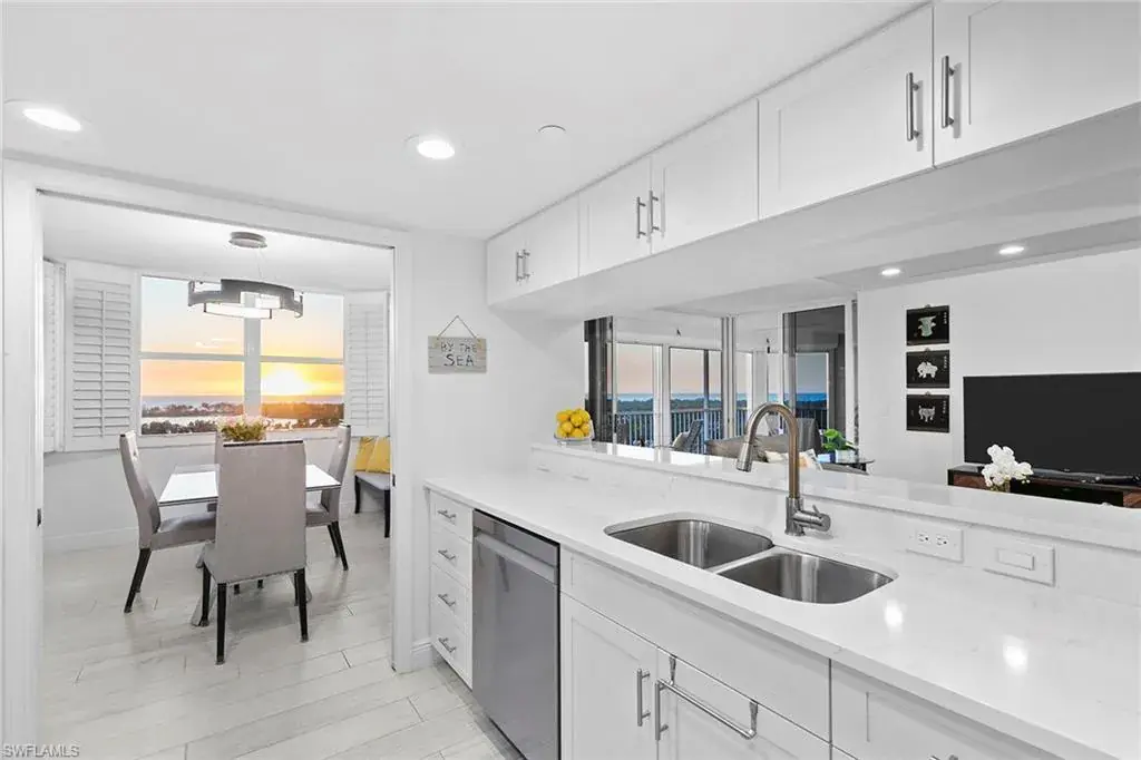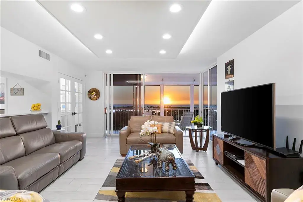 Exceptional Opportunity with Stunning Views! Immaculate 2bed+den, 2bath condo, fully remodeled (2019) Move-in ready! Situated on the coveted north side of the building. Relish breathtaking sunsets & panoramic northern vistas up to Sanibel. Private lanai & porch. This 6th floor retreat offers Gulf views, birdwatching & Clam Pass activity. Peace of mind w/new hurricane-rated impact glass windows, storm shutters & entry door. NEW: Italian porcelain tile flooring throughout (inc lanai), soft-close cabinetry, Quartz countertops, SS appliances, wa/dryer, dimmer lighting, closet organizers, & baths w/ frameless glass doors. Trane 4 AC/Heat system, air purifier & Rheem 50-gal water heater. Private den w/French doors (potential sleep space) Extra storage next to unit. Updated pool/spa, pool equip & deck. 2 guest suites, on-site mgmt, fitness, BBQ, community, card/game room & billiards. Electric car-charging station. 2 pets-15 lbs. Live directly on the berm. Pelican Bay, the epitome of luxury resort-style living, 2 private beachfronts w/cabana service, dining, group &personal fitness, nature trails, tennis courts, art classes & wellness spa. Secure your piece of paradise today!