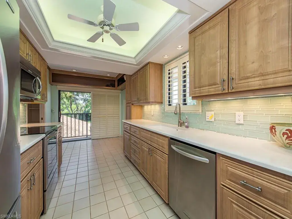 BEST VALUE in the area! Beautiful wide-open lake views from the large screened-in porch make this 2nd-floor end unit the perfect RETREAT! This light and bright unit has an updated kitchen and master bath, sliding plantation shutters throughout, a 2019 Trane AC, a tankless water heater, electric hurricane shutters throughout, and its VERY OWN Highlander vertical platform lift to take you or your groceries right to your front door. Miles of scenic nature paths, a community pool, and a manned guard gate are only a few of the amenities you will appreciate here. Located just inside the back resident entrance for quick and easy access to the beautiful white sandy beaches at Wiggins State Park, The Retreat in Bentley Village is one of Naples’ most desirable and best-kept secrets West of 41!