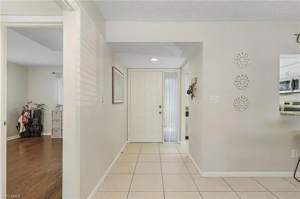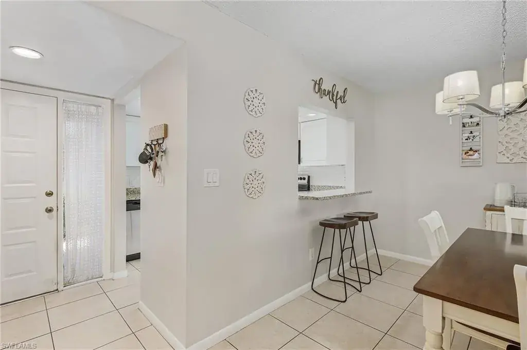 First floor condo. Close to 5th Avenue – beaches and golf.  A beautiful 2 bedroom/2 bath, Updated kitchen with granite countertops, tray ceiling and stainless steel appliances. Tile throughout the common areas and wood laminate in the bedrooms. Large walk -in closet in master bedroom. Laundry room adjacent to screened lanai. Individual covered parking with storage area. Amenities include: Clubhouse, pool, bar-b-que grill, and bocci are all there for your enjoyment.