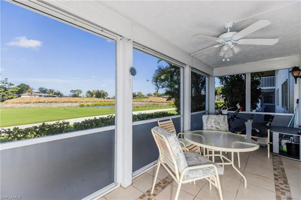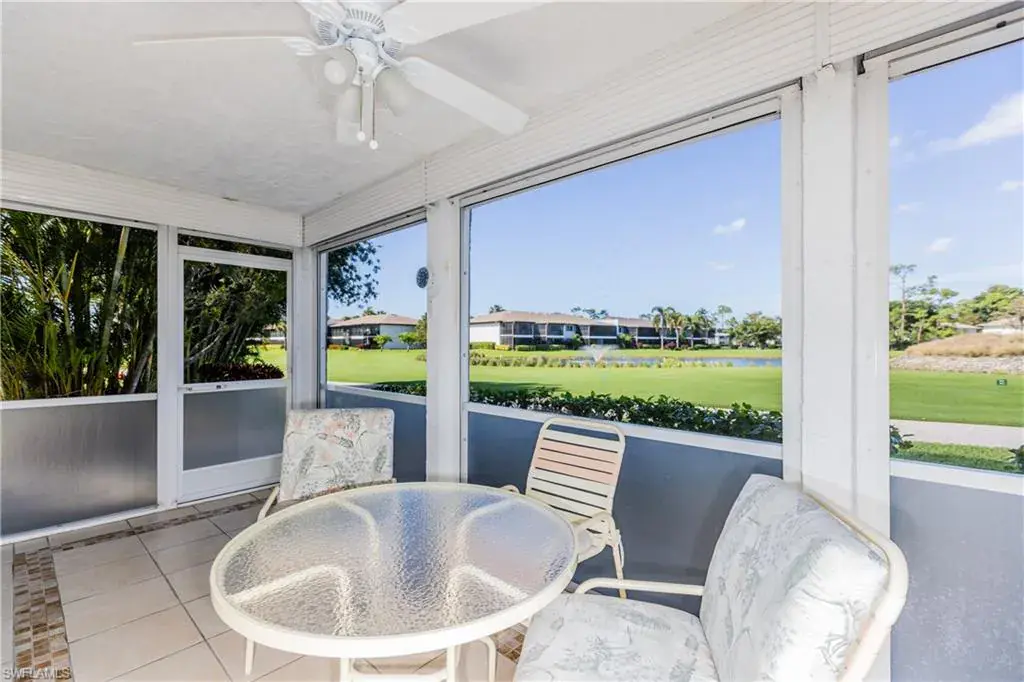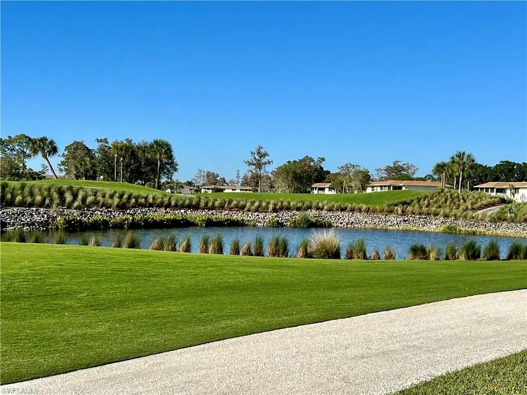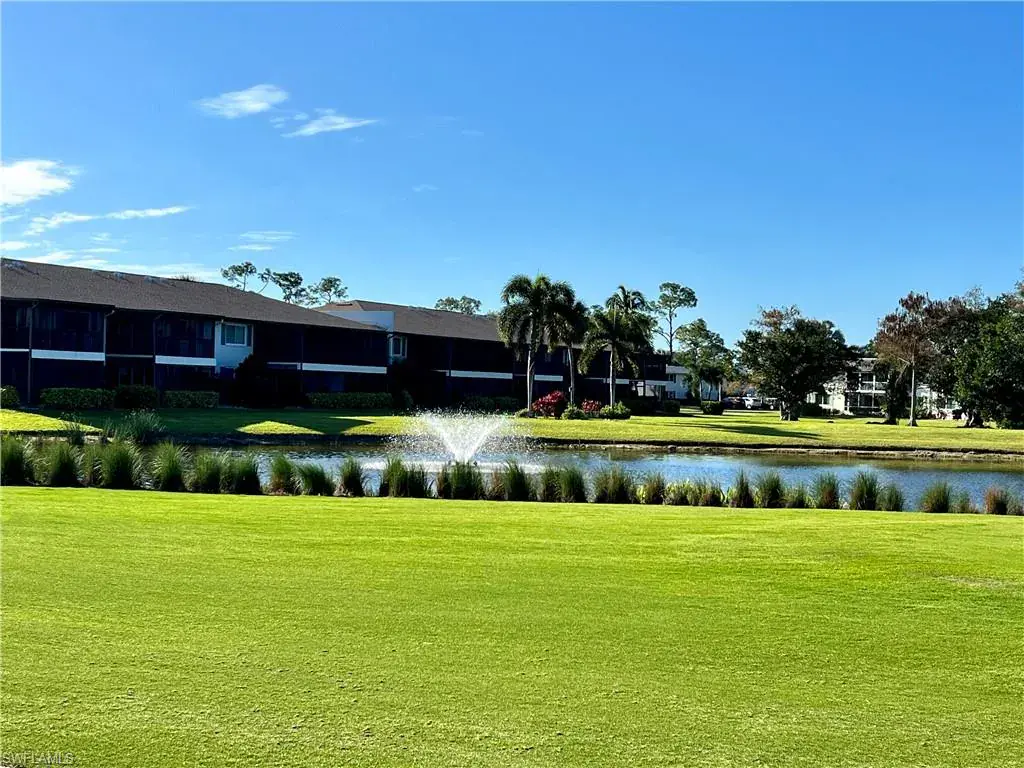 MOTIVATED SELLER-bring an offer! Desirable First Floor condo with a beautiful wide views of the 18th Fairway, lake and fountain of the Pines Golf Course. VERY SHORT WALKING DISTANCE TO CLUBHOUSE! Glades Golf & Country Club is the best kept secret in Naples with unlimited bundled golf! This 2 BR, 2 BA Esplanade model has a roomy 1,403 SF and large lanai with shutters so you do not have to bring furniture in! Impact glass! New flooring and carpet. Freshly painted. New television, fans and lighting. New honeycomb window shades. Newer AC with an ultraviolet purifier. Both bathrooms have newer tile and newer vanities. The Glades has two recently renovated Audubon Certified, Gordon Lewis designed golf courses- the Pines par 70 course and Palmetto par 55 course. The beautiful clubhouse has been also recently renovated and has an active social calendar. The tennis courts have been upgraded & expanded to include eight pickleball courts! There are 8 neighborhood pools plus a beautiful club house pool, bocce & shuffleboard. The Glades is minutes to 5th Avenue & Beaches. The private clubhouse has delicious food for breakfast, lunch & dinner. $980/month dues INCLUDE unlimited golf for two, tennis, pickleball & other activities, clubhouse/restaurant, cable & wifi, water, & pest control.