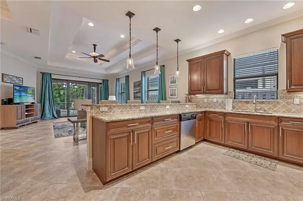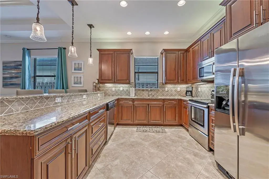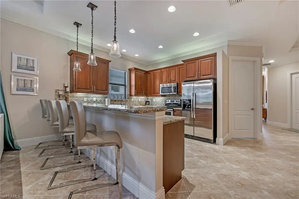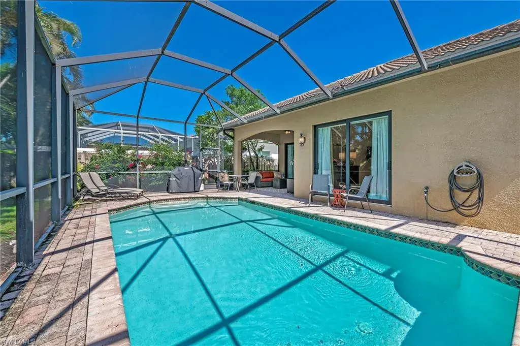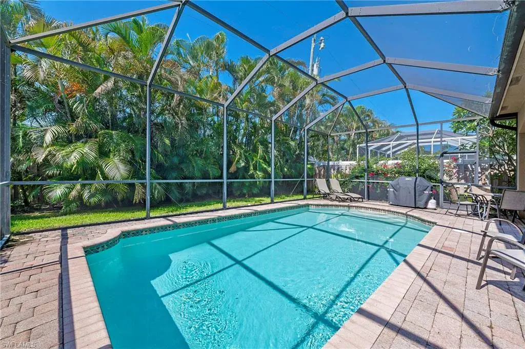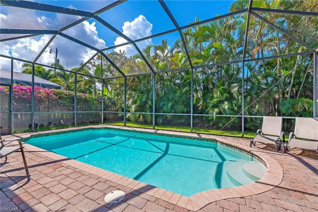What are you waiting for? Significant price reduction and being offered turnkey furnished—this 3-bedroom plus den, 3-bath home with a two-car garage and screened pool is ready for you. Located in the sought-after 500 block of Naples Park, this move-in ready property combines quality finishes with a prime location just a short walk or bike ride to the beach to enjoy the beautiful sunsets. Inside, you’ll find high ceilings, porcelain tile throughout (no carpet), and a gourmet kitchen with stainless steel appliances, granite countertops, and an oversized breakfast bar. The expansive great room is perfect for gathering, while solid wood doors, impact glass windows and doors, and a brand-new AC (2022) add comfort and peace of mind. The primary suite and guest rooms are spacious, with well-appointed baths. Step outside to a pavered, screened pool deck surrounded by lush landscaping and a fully fenced backyard—offering privacy and a perfect retreat. No HOA fees, Flood Zone X (no flood insurance required), and surrounded by newer homes with great curb appeal. This home is ideal for a full-time residence, seasonal escape, or investment property with proven rental history and future bookings already in place. Turnkey, upgraded, and in one of Naples’ most desirable neighborhoods—schedule a showing today.