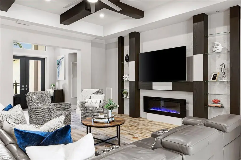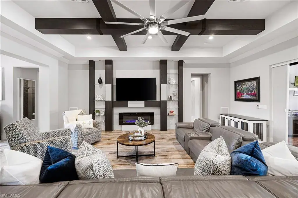 Welcome to this coastal contemporary masterpiece. A 2017 build featuring impact-resistant windows and doors, a concrete tile roof and a whole-home generator. The gourmet chef’s kitchen features all stainless steel appliances including a double oven, icemaker, 47-inch refrigerator and pot filler. An abundance of drawers and cabinetry with soft-close features surround the granite countertops. Custom millwork and premium finishes exude luxury throughout the home. The high-end surround sound system extends to the pool, lanai and basketball area and has five zones of Sonos and three Ring doorbells. A surveillance and alarm system features 13 cameras. An abundance of Wi-Fi extenders means you’ll always be connected. The lanai features a premium outdoor kitchen, flat screen TV, fire pit, bar and bath. Relax in outdoor paradise around the oversized saltwater pool compete with outdoor shower. Mature landscaping lends serenity and privacy. A fully fenced backyard features pass-through access to the property’s large, cleared section with plenty of room for a guest house or RV storage. Conveniently located half a mile to Interstate 75, and less than 15 minutes to downtown and the beach.