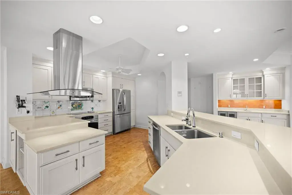 Beautiful condo with spectacular golf & lake views in North Naples’ coveted “Audubon Golf & Country Club!” All the prime amenities offered in Audubon are only steps away, including an 18-hole championship golf course, tennis, pickleball, Bayside boardwalk, brand-new spectacular poolside club & café. Relax and unwind on your expansive screened-in lanai with breathtaking panoramic golf course and lake views. This light, bright & airy home boasts an open floor plan with 3 beds + den/3.5 baths, private 2-car garage plus golf cart storage, tray ceilings, ample storage with built-in cabinets, formal dining space & built-in wet bar with wine fridge. Chef’s kitchen offers high-end custom white cabinetry, quartz counters, separate range hood vent for grilling if desired & an eat-in kitchen that can also be utilized as an extra living area or home office. Spacious primary suite offers magnificent golf course views, custom closets with abundant storage, separate jetted tub & dual vanities. North Naples’ “Audubon Country Club” is perfectly located 5-min from Mercato & SWFL’s world-class beaches, with gated/guarded entry.