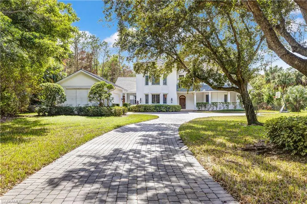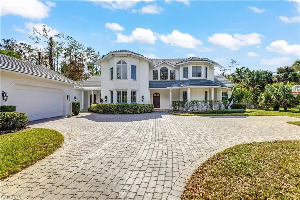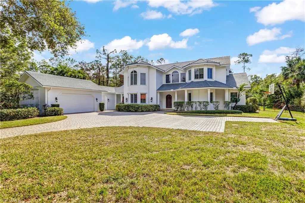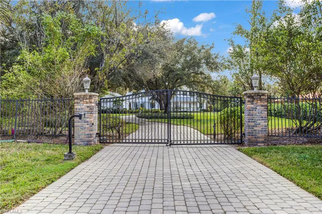 Discover the ultimate in luxury living with this stunning custom-built home nestled on 2.27 acres in the highly sought-after Oakes Estates. As you enter through the impressive private gate, a long, paved driveway leads you to a spacious circular driveway, providing ample parking for family and guests. Boasting over 4,000 square feet of air-conditioned living space, this residence features five bedrooms and four bathrooms, seamlessly blending comfort and style. The gourmet kitchen is a chef’s dream, equipped with a dual-fuel 6-burner gas stove, double ovens, granite countertops, and an oversized island, making it ideal for both cooking and entertaining. The adjacent expansive family room is perfect for gatherings. Upon entering through the mahogany front door, you’ll find exquisite 20″ honed limestone marble flooring throughout the main level. The living room impresses with high ceilings, a gas fireplace, and French doors that open to the outdoor pool deck. Two bedrooms are conveniently located on the main floor, including one with a private entrance, ideal for a home office. Another spacious bedroom features an ensuite bathroom, and there is an additional full bathroom accessible from the pool area. Step outside to enjoy the southern exposure of the pool area, complete with a large deck, custom-built slide, and a rock waterfall. The expansive open lanai provides the perfect setting for relaxing or entertaining while enjoying the gentle breeze. Upstairs, the master suite offers a private lounge area, wet bar, and two large walk-in closets. The luxurious master bath is equipped with a jetted tub and a stunning walk-in shower featuring nine jet sprays and a rain shower head. Additionally, the converted third car garage serves as an air-conditioned play area or gym (with permits), enhancing the versatility of the home. The large laundry room includes a pet washing tub, and the entire residence is equipped with a reverse osmosis system. Conveniently located in North Naples, this property is just minutes from I-75, pristine beaches, and a variety of dining and shopping options, all without the burden of HOA fees. This exceptional residence presents a unique opportunity for luxurious living in a serene setting. Schedule your private showing today!