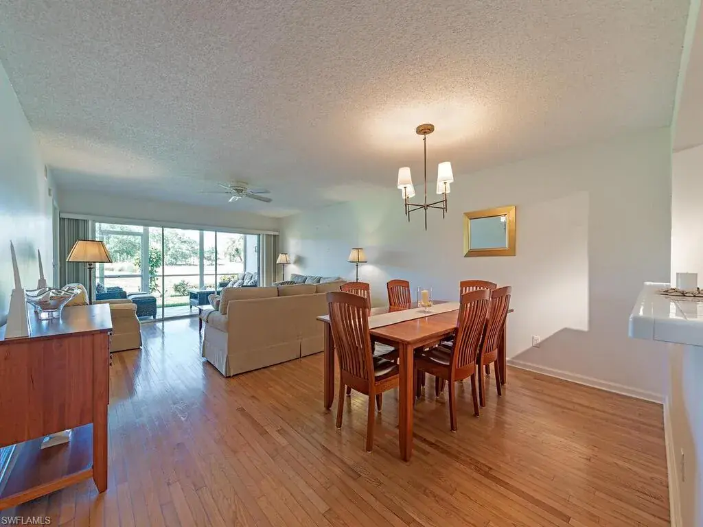 Make Your Money Grow in this Tastefully Appointed, partially furnished, 3/2 or 2/2 plus den, 1st Floor Beautiful Condo with a detached garage, too! Be impressed with the Hardwood flooring + tile bath room flooring throughout! custom Foyer + the White/Bright newly remodeled eat in kitchen with track lighting and a step -in panty, Inviting Dining + Living area. den with pocket doors + Office or 3rd Bedroom! Guest suite with 2 new Twin Beds that will be included , The Master Suite is off the Liv. area walk in shower with new tiles + clear glass doors, new toilet, higher vanity. The Guest Bathroom has been renovated with a new higher vanity + new toilet, too! The Tiled lanai overlooks the 14th hole and includes the furnishings + Artwork. 1 car detached garage with pull storage space This Unit is a HIGHLY desired Condo as it has the open Courtyard view, close to the Condo’s Community Pool and Clubhouse, and the Fabulous Golf course view in the back! Buyer who looking for it ALL, living in a Resort like Bundled Golf , with Tennis Courts, Pickle Board Cts, Pools, remodeled Restaurant, 4500 Sq Ft Gym, Activities Galore + more, show them this Beauty! It will Sell itself!!! Wow!!!