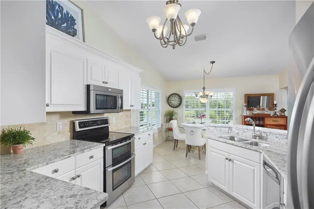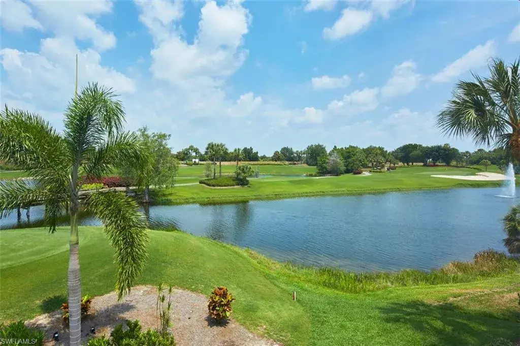 Welcome home to the Naples lifestyle within the prestigious golf community of The Strand! With amazing lake and golf course views from your spacious lanai, you may enjoy your breakfast while taking in the gorgeous sunrise. This spacious, light and bright two bedroom with a den home even comes equipped with granite counters and double ovens. The primary suite is generously sized with two walk in closets that have built in cabinetry and a spacious primary bath. The property includes a two car garage with direct entry into your home. Clubside at The Strand offers three stunningly maintained nine hole golf courses along with an island bar and private restaurant, attended fitness center, full service spa, sparkling pool with lap lanes, tennis, bocce ball, pickleball, basketball, croquet and so much more. Come home to Naples, luxury living at its finest!