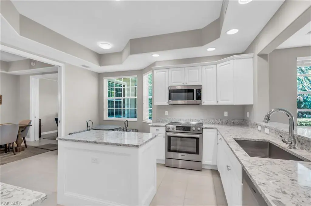One of the nicest locations nestled in a serene wooded enclave, this first floor coach home offers a harmonious blend of modern luxury and is surrounded by natural beauty. Boasting two spacious bedrooms plus a den and two full bathrooms, along with two-car garage. This residence is designed for comfort and convenience and offers plenty of storage. The kitchen has been fully updated and is equipped with high-end appliances, quarts countertops, and stylish cabinetry. Spacious Primary bedroom with enough room for a sitting area. Conveniently located in The Strand yet tucked away from the hustle and bustle, this carriage home offers a rare combination of privacy, luxury, and natural beauty. The social membership includes tennis, bocce, pickleball, croquet, fitness, and a Jr. Olympic pool with lap lanes. The Island Bar is a favorite while you relax at the pool, casual and private dining are available.