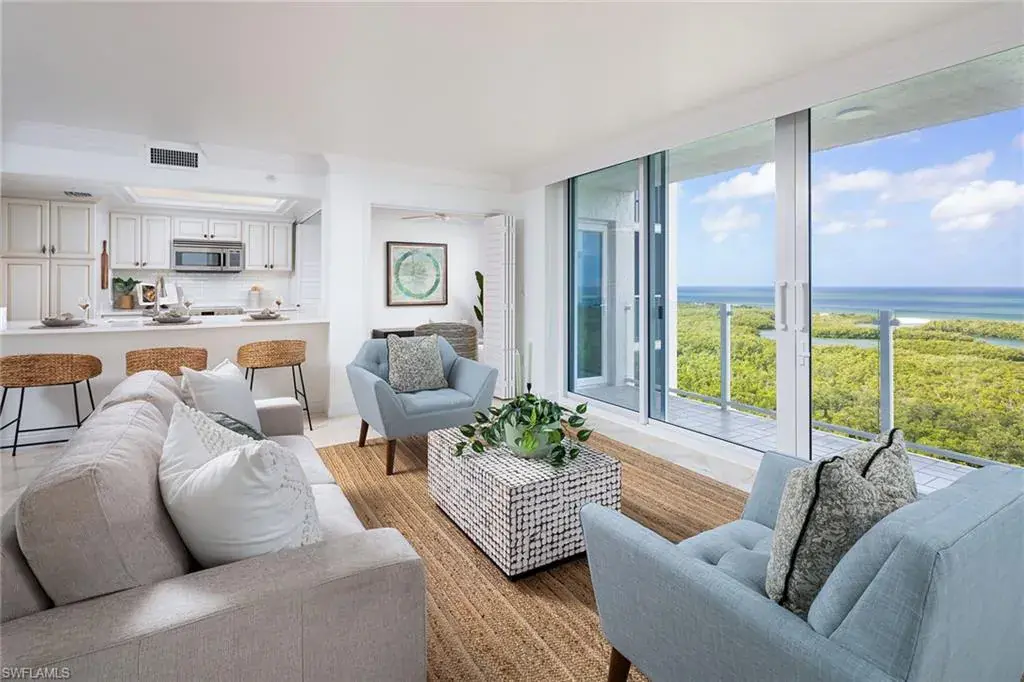 Experience breathtaking views of the Gulf from this coastal luxury residence at St. Maarten at Pelican Bay. This modern and bright two-bedroom plus den, two-bath end-unit residence with impact-resistant windows and sliders exemplifies the idyllic Pelican Bay lifestyle. St. Maarten is on a premier stretch of Pelican Bay Boulevard in Naples. Resident amenities include pool/spa, sauna, billiards, library, fitness and social rooms. St. Maarten is conveniently steps from the tram that provides transportation to and from the beach. Residents of Pelican Bay enjoy two private beach clubs with restaurants, walking and bike paths, tennis, kayaks, pickleball courts and more. See why many love calling Pelican Bay home.