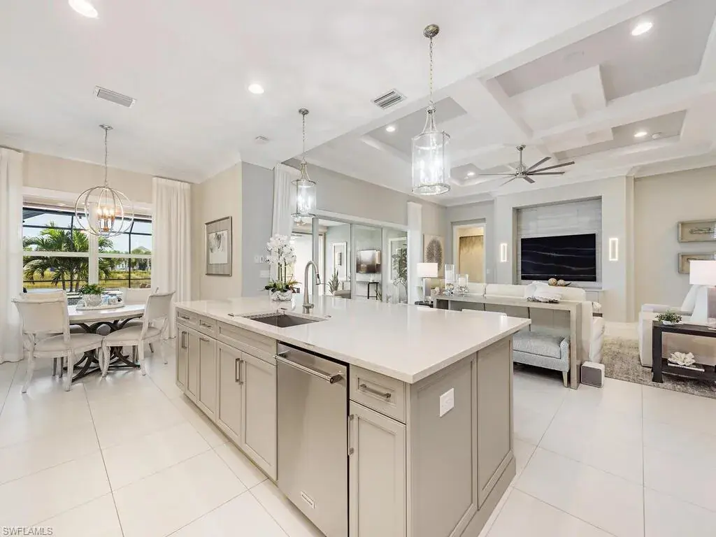 This beautifully furnished lakefront Mayfield former Model Home is loaded with upgrades and features 4 Bedrooms, Den, 3 Full Baths, 1 Half-Bath, Great Room, Formal Dining Room, Large Laundry Room, 3-Car Garage, 500 Gallon Buried Propane Gas Tank, Gas Kitchen Cook Top and Outdoor Kitchen in nearly 1000 square feet of Covered Lanai outdoor living space to enjoy outdoor living at its best! Custom Pool/Spa package and many options and custom upgrades including: Living Room coffered ceiling, cabinetry, lighting and mirrors. Nestled within a pristine natural setting, The Isles of Collier Preserve is a gated community only a 10-15 minute drive to Old Naples’ restaurants, shopping, art galleries and pristine white sand beaches. First-class amenities in The Isles include: resort style pool, spa, separate lap pool, state-of-the art fitness center, locker rooms, saunas, tennis, pickleball, bocce, miles of walking and hiking paths, pool-side restaurant, kayaking, canoeing, paddle boarding, dog park, all in an environment with more than half of The Isles a natural preserve.
