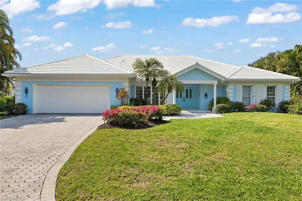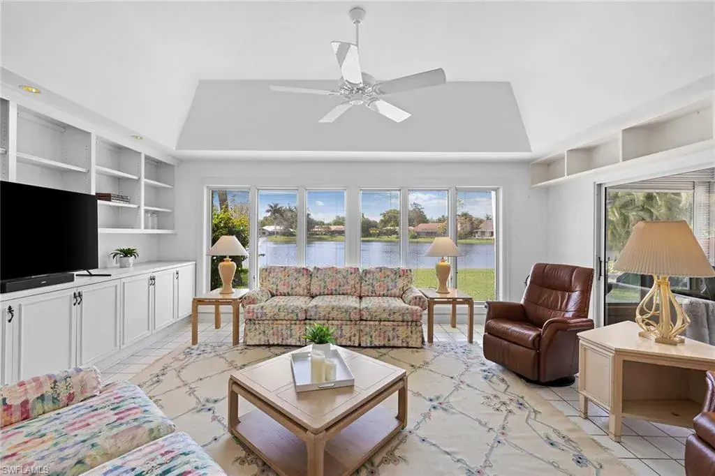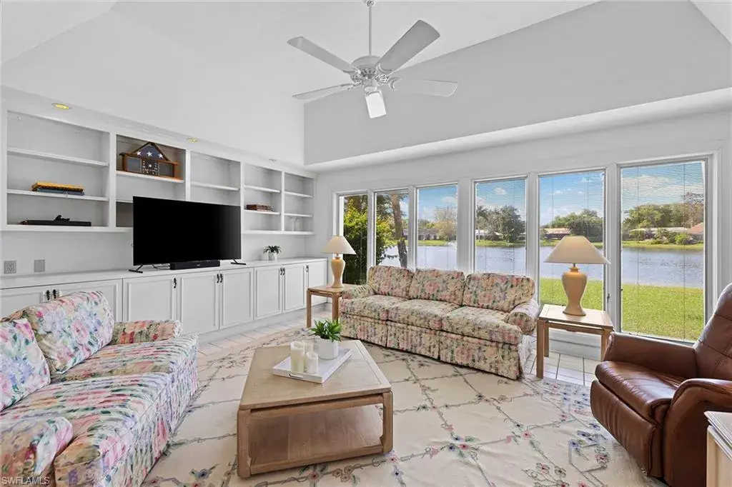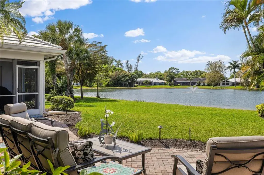 Rarely available in highly sought-after Naples Bath and Tennis Club! This ranch-style home boasts over 2,600 square feet, large screened lanai and outdoor brick patio. Picturesque lake and fountain views from primary bedroom, living room, kitchen, den and guest room. This home is a three-bedroom, 2.5-bath residence, with large two-car garage, great storage and a seven-year-old roof. The flowing floor plan allows for effortless entertaining inside and out. This community is pet-friendly and monthly fee covers lawn care and maintenance, and irrigation water. Centrally located, short distance to shopping and four miles to the crystal white sands of the Gulf of Mexico.
