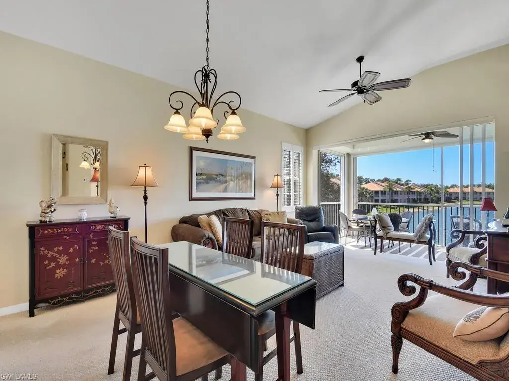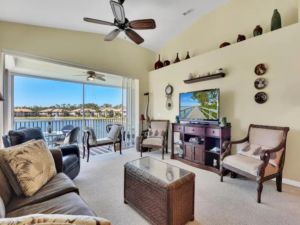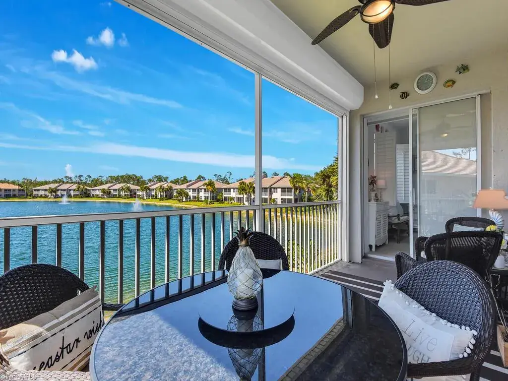 Move-in ready! Passed the gates from Vanderbilt Beach RD you are taken into the beautiful community of Wilshire Lakes. This gorgeous fully furnished 3 bed & 2 bath 2nd floor carriage home comes with all the bells and whistles necessary for Florida living at its best. The kitchen is built for entertaining with a spillway for stools at your discretion. Enjoy double sinks, pantry, SS appliances, and plentiful counter & cabinet space all the while taking in lake views from the kitchen. The dining and living area also enjoy lake views from the enclosed balcony with access from the primary bedroom as well. Winters here are a treat with gorgeous breezes and ceiling fan in the balcony. The primary bedroom is large with more lake views, dual vanity, separate soaking tub and shower. The two remaining bedrooms are also spacious for out of town guests to use while visiting. Wilshire Lakes enjoys luxurious amenities from the community pool, clubhouse, and gym area. Convenience is enhanced with laundry in residence, plantation shutters throughout the home, and one car detached garage. Located in North Naples, enjoy all that SWFL has to offer including top rated schools.