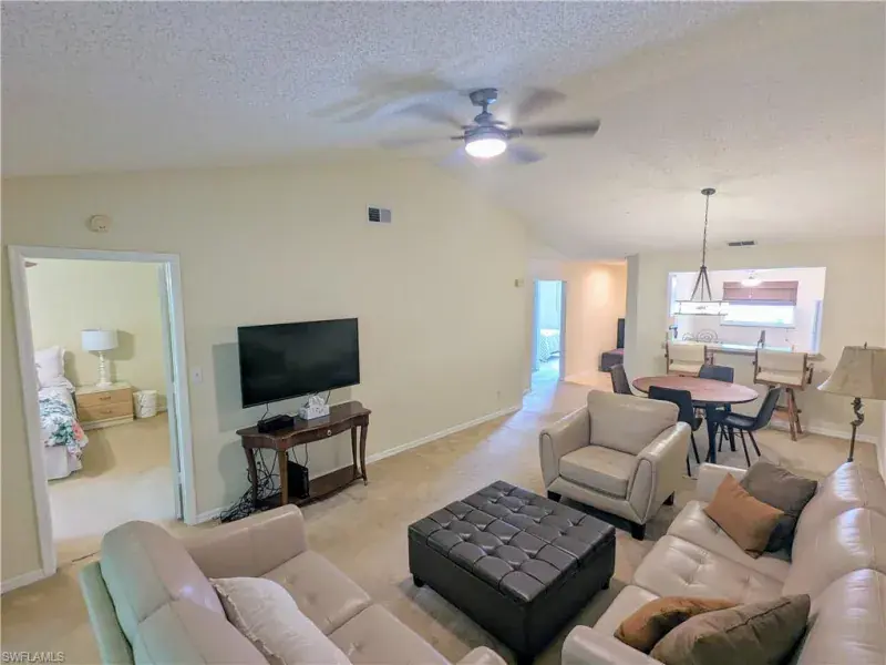 Turnkey Furnished – Rarely available, top floor two bed two bath boasting vaulted ceilings and quiet, private building tucked away on a lush wooded preserve. This unit is open and airy, drenched in natural light from all directions. Private entrance to a long hall that privatizes the spaces nicely, with a large kitchen to the left and guest suite on right. Full laundry and storage in huge utility room. Kitchen opens to family room dining and a large open living space that looks out to a screened in private lanai. Dine al fresco or enjoy the Florida weather with western sunset soaked exposure. This unit is tucked away from i75, with no road noise like many other nearby comps. 180 degree view of natural private preserve. Large master bedroom with a walk in closet, dual vanity bath, walk in tile shower. Just across parking lot is clubhouse and pool, close enough to enjoy but far enough one isn’t disturbed by community activities. Newcastle is a charming enclave of lush landscaping, towering canopy live oak trees and meticulously maintained grounds. Berkshire Lakes boasts community center, large pool and many amenities including meandering walking trails throughout the neighborhoods, connecting each. Everything a short drive, bike ride or even walk to Berkshire Commons shopping plaza, with everything from grocery to drug store, to mom n pop and national restaurants alike, breakfast cafes, top lunch spots and even fine dining, coffee and ice cream shops, fuel, banks, spa and more! Unmatched walk-score for this property. Make this large vaulted ceiling plan your own!