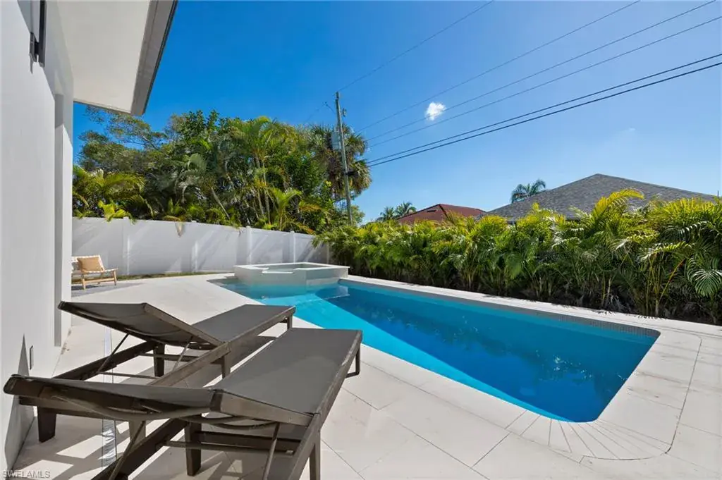 Welcome to your dream home in Naples Park! This Newly Constructed home features a modern design & unique architectural interest, just blocks away from the Gulf. The home features an open floor plan with high ceilings. Large panoramic windows fill the space with natural light. The kitchen is a chef’s delight, featuring a modern design with Travertine countertops and backsplash. This beautifully designed home features an elegant master bedroom with panoramic windows and en-suite bathroom with custom floor-to-ceiling tile. Plus three additional bedrooms, each having private en-suite bathrooms, and a guest half bath also. Step outside to your private escape, lanai with a heated pool/spa, surrounded by limestone pavers, a fully fenced yard, full irrigated lawn. Lanai also features a covered outdoor kitchen and grill area, perfect for entertaining. This property is a masterpiece of design offering stunning tropical landscape views. This home is close to Naples beaches and shopping areas, offering the perfect blend of style and comfort. Located in the highly-desired Naples Park area, this community has no HOA restrictions. Don’t miss the opportunity to make this luxurious retreat your own!