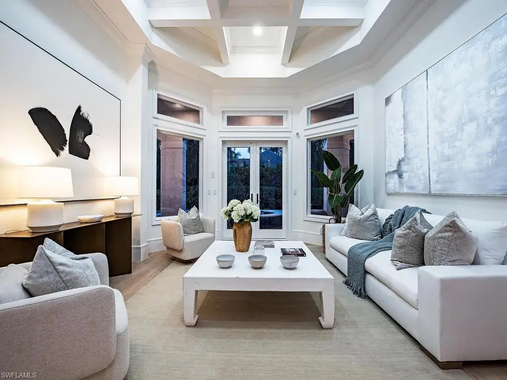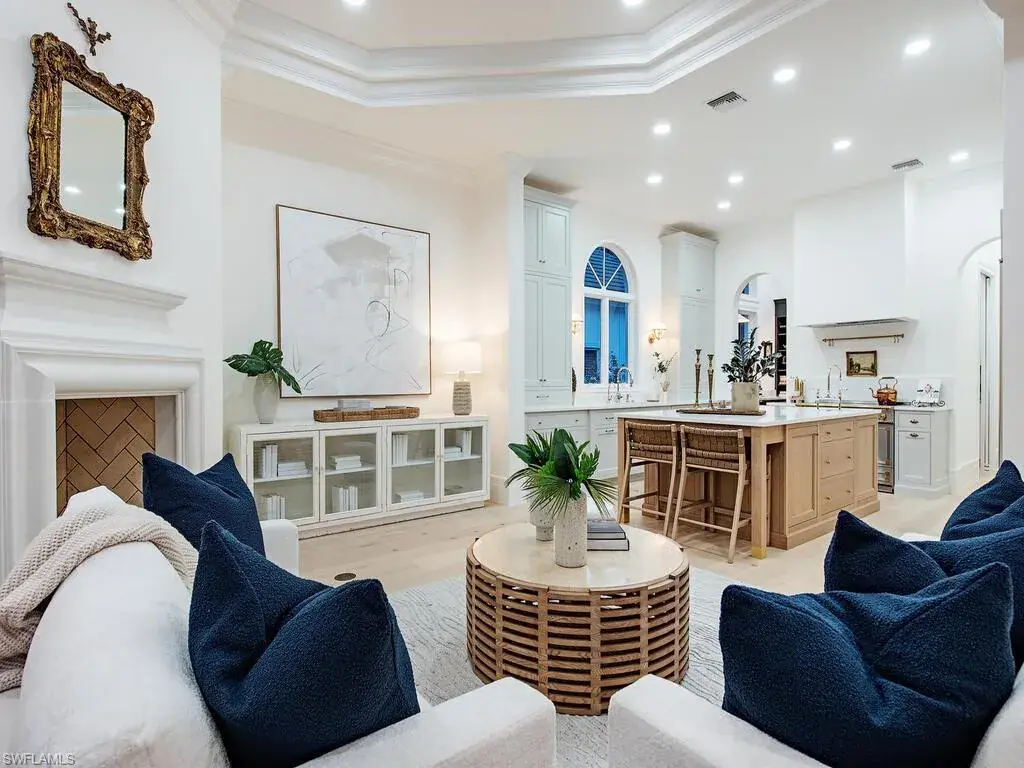Exceptional completely remodeled custom-home, located in an X-flood zone in the Moorings. Perfectly positioned on a sought-after oversized southern exposure lot just minutes from the Moorings’ exclusive private beach access. A welcoming foyer leads to a south-facing covered veranda, a pool and spa surround, and a beautifully landscaped, fenced garden. The home features a formal dining room, Chef’s kitchen complete with incredible La Cornue induction range, custom hood, quartz countertops, Butler’s pantry and additional prep sinks. This home boasts a spacious private study with built-in bookshelves, and a light-filled great room with vaulted ceilings and a gas-fed fireplace. The expansive veranda includes multiple seating areas, an outdoor kitchen, and direct access to the pool, enhancing the splendid indoor-outdoor lifestyle. The generous primary suite includes to large custom-fitted closets, and a spa-like bathroom with dual sinks, jetted soaking tub, separate shower, and more. Upstairs, two ensuite bedrooms each enjoy access to a shared covered balcony. Additional features includes a whole-house water filtration system, a five hundred gallon in-ground gas tank, fireplace, a 22KW whole-house generator, solar and electric pool heaters, impact-resistant windows and doors, New roof, a three-bay garage, and many recent updates. The Moorings offers serene Gulf and beach access in a tranquil, well-established community setting.