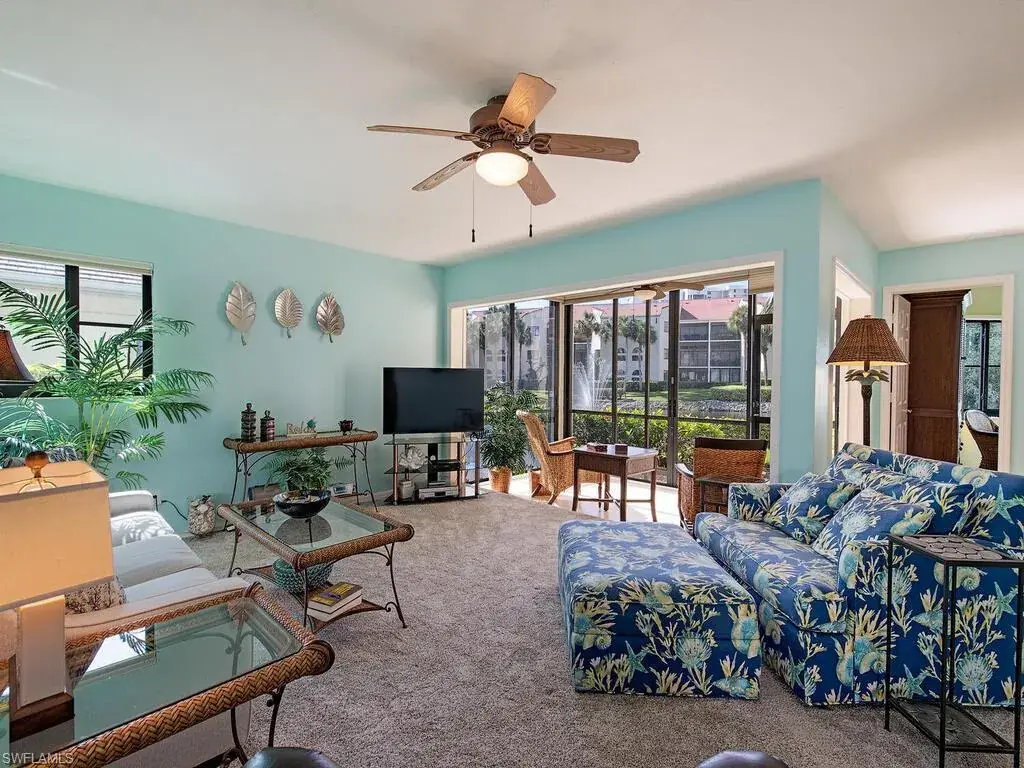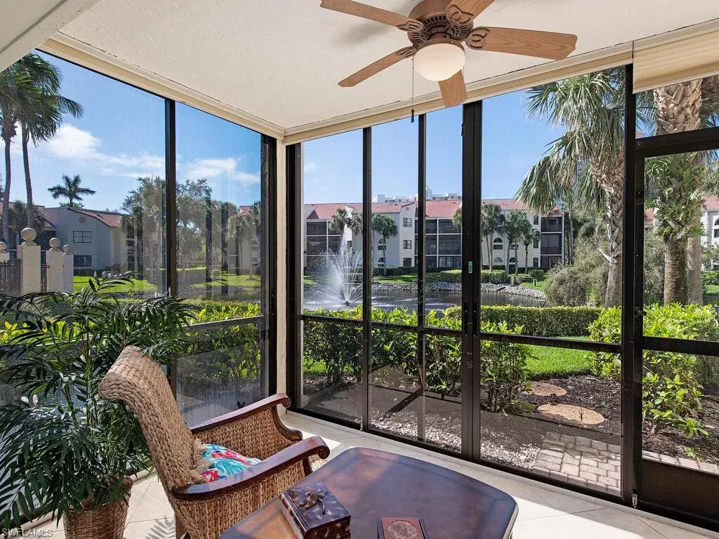 Come and enjoy this light and bright condo with direct views of the lake and water feature right in your own backyard. Offered turnkey furnished and move in ready! Impact resistant windows in 2021, furnace and A/C in 2022, dryer in 2019, matching washer in 2021. Enjoy peaceful and serene lake views from your lanai, living room, dining room, kitchen, and master bedroom. Conveniently located within steps to the community pool. You will love the natural light that flows through the condo. Floor plan allows for easy living and comfortable surroundings. Spacious and private master bedroom, glass enclosed shower, separate tub and large walk-in closet, guest bedrooms privately located on other side of condo. Entry gate brings you right to your own courtyard area that leads to the front door and storage room. Covered carport conveniently located in front of the condo. Pelican Bay is located near Waterside Shops, great restaurants, and entertainment. Steps from the Pelican Bay Clubhouse, within walking distance to the Commons and southern beach tram. Start enjoying the Florida lifestyle! Agents please see comments.