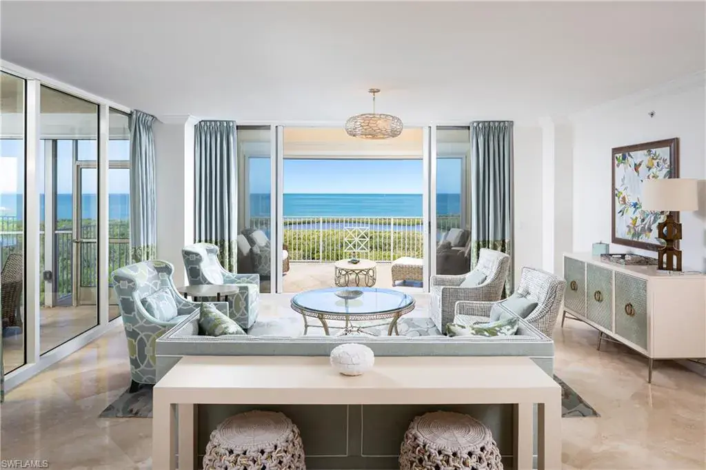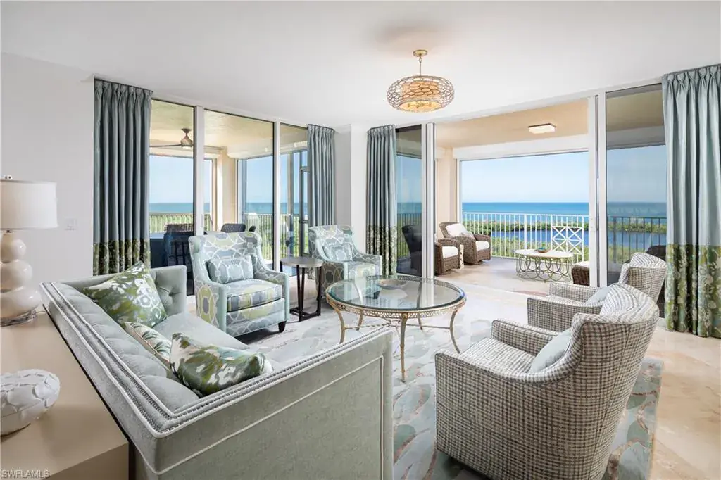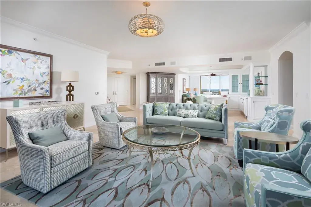 Located on the 15th floor this incredible property boasts endless sparkling Gulf of Mexico views from almost every room! As a coveted high floor end unit this beautiful property graces it’s owner with arguably the best views in all of Pelican Bay. Featuring 3 large ensuite bedrooms, 3275 SQFT of interior living space and 500+ SQFT of outdoor living space this well designed open floor plan flows continuously throughout with a large upgraded island centered perfectly between the living room and family room curating the perfect entertaining space. Recent upgrades include: 3M UV ray blocking tint in the living room windows brand new carpet in the primary bedroom and walk-in closets ceramic wood tile flooring in each guest bedroom and so much more! Cap Ferrat has a 24-hour security staffed front desk, and is located within the private neighborhood of Crown Colony a 24-hour gated community with 24-hour security staffed gate. Cap Ferrat features 5 star living with it’s own beautiful resort pool, exercise room, library, billiards room, and private tennis courts, all amenities that are in addition to Pelican Bay’s world class amenities. Pelican bay is Naples’ premier beachfront community.