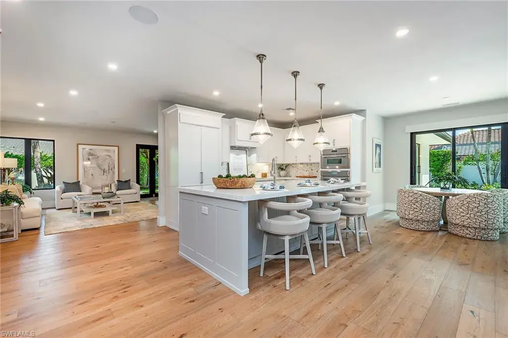 Tropical ambiance is abundant in this one-of-a-kind, completely renovated home in the heart of the prestigious beachfront community of Pelican Bay. Design selections curated by Collins DuPont effortlessly blend timeless Floridian charm with modern luxury. Step outside to your private oasis, where an expansive pool area, surrounded by lush landscaping, creates a backdrop for relaxation and entertaining – Complete with an outdoor kitchen and a spacious covered living area, inclusive of remote-controlled retractable screens. Light-filled and breezy, the home features all new high-impact glass, a chef’s kitchen with Thermador appliances and a Sonos sound system throughout. The generously sized lot, private fenced yard and mature landscaping, along with secluded outdoor sitting areas, all enhance the feeling of privacy. Pelican Bay offers resort-style amenities with private access to three miles of white-sand beaches, sailing, kayaking, beachfront dining, a robust tennis program, a state-of-the-art fitness center, as well as recreational trails and parks across 88 acres of nature preserve.