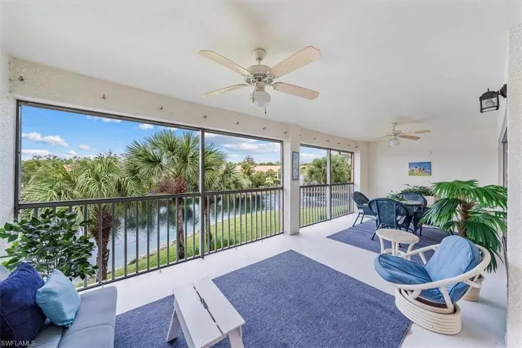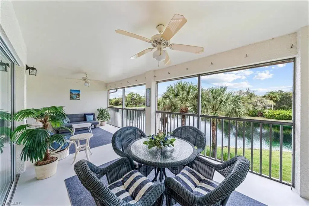 Relax, entertain and dine on the oversized lanai of this light and bright condo. Enjoy lake views of two water features with a surprising amount of privacy. It also has easy to install screen/fabric storm protection panels. The immaculate 2BD/2BA floor plan features cathedral ceilings, and spacious laundry room with a utility sink. Bonus – there is no weight restrictions on pets in phase IV.Falling Waters Beach Resort is one of Naples most desirable developments with its 600′ lazy river pool, tennis, pickleball, bocce ball, and a separate lap pool. Residents enjoy the very social lifestyle with its many activities in the clubhouse, walking, jogging and biking around the neighborhood and its ideal location between Naples and Marco Island. Grocery stores, Lowes, restaurants and shops are across the street and the Naples’ sugar white beaches are straight down Tamiami Trail. This condo is conveniently located near the main entrance.