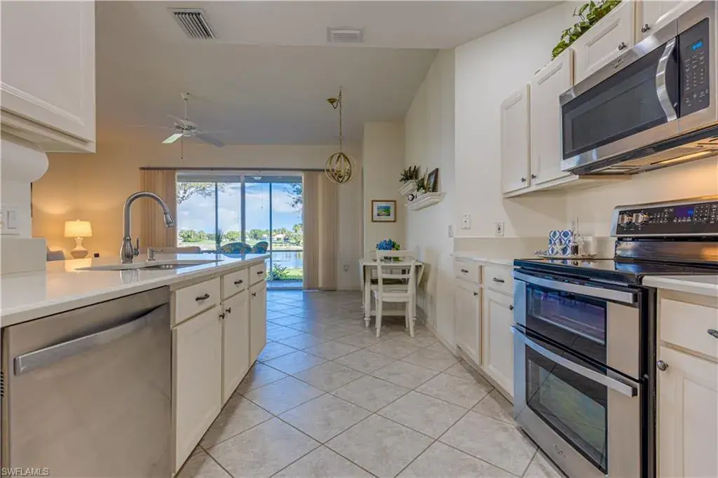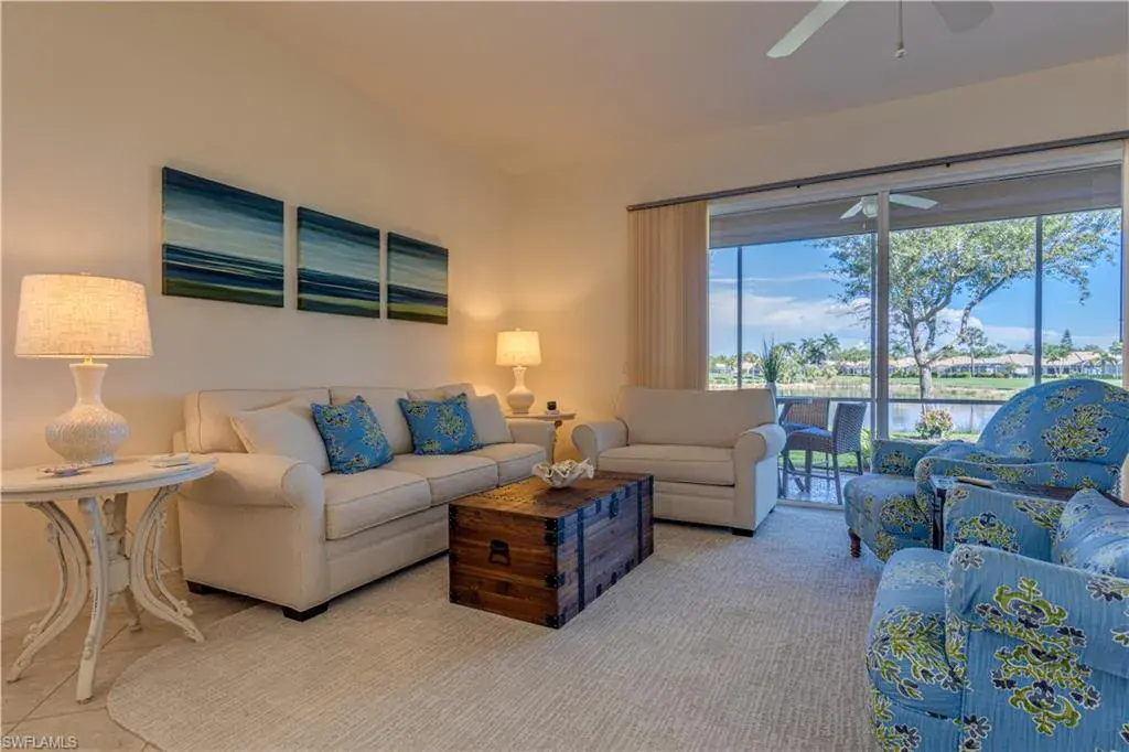 Here it is the two bed/ two bath with den Coach Home in beautiful Glen Eagle Golf and Country Club! Tastefully decorated and well appointed, this gorgeous 1st floor home is simply stunning! This property has it all, a social membership enabling golf on Glen Eagle’s beautiful course from May to October and all other club amenities: Tennis, Pools, Bocce, Restaurants, Fitness Center and social events to name a few. Most of the beautiful furnishings are included. New quartz countertops in an open concept kitchen, plantation shutters throughout, upgraded carpet in bedrooms, attached one car garage, and even Storm Smart hurricane shutters on the newly furnished lanai! The large lanai offers a peaceful view for your morning coffee and stunning sunsets to enjoy with an evening cocktail. Fitness center in the morning followed by laps in the pool, just steps away, then lunch at the club before the short drive to Naple’s famous Fifth Avenue and the beaches. Live the Naples lifestyle and live it well from this beautiful property in Glen Eagle!