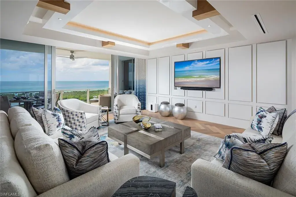 Mystique is the newest high-rise luxury building in Pelican Bay, overlooking the majestic waters of the Gulf of Mexico. Prepare to be captivated by the breathtaking views and enchanting sunsets from the 15th floor of this prestigious building. Designed by Collins and DuPont Design Group in coastal blues and whites and featuring custom-designed Cambria radius bar with agate semi-precious stone lighted backsplash, silk Phillip Jeffries wallpapers, white kitchen with Carrara marble countertops, Wolf and Sub-Zero appliances, Legno Bastone herringbone wood floors, and beautiful custom finishes throughout. Experience the convenience of 24/7 concierge services, making every day feel like a vacation. Located in the prestigious Pelican Bay community, you will have access to a variety of resort-style amenities including private beach access with beachfront dining, beach club, tennis courts, fitness and community center, miles of walking and bike paths, and more. Centrally located and within short distance of Artis-Naples and Waterside Shops. This is more than a home; it’s a lifestyle.