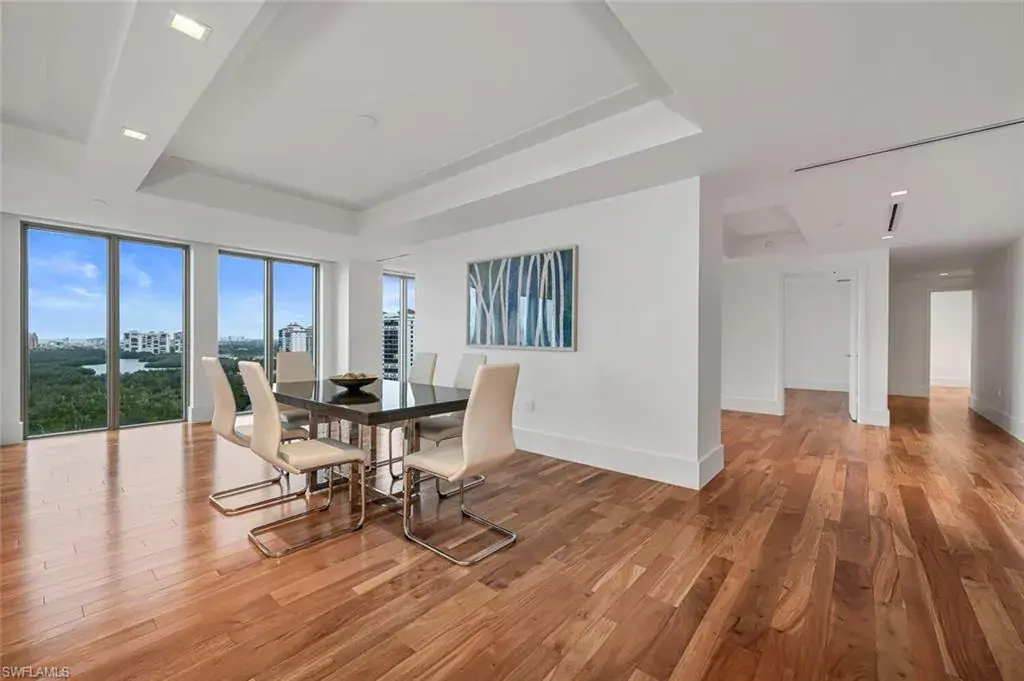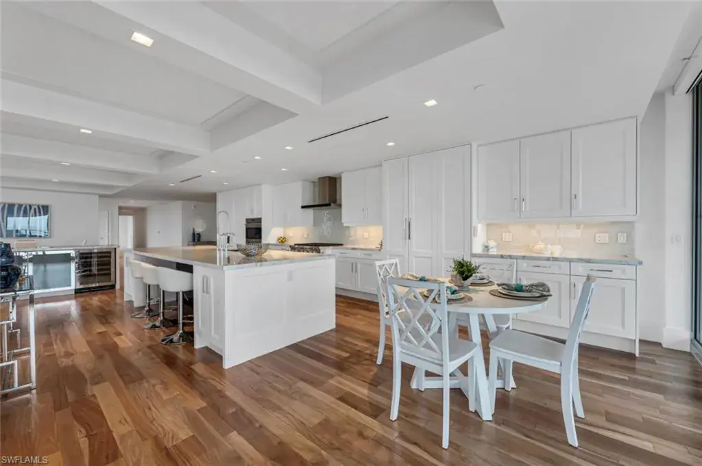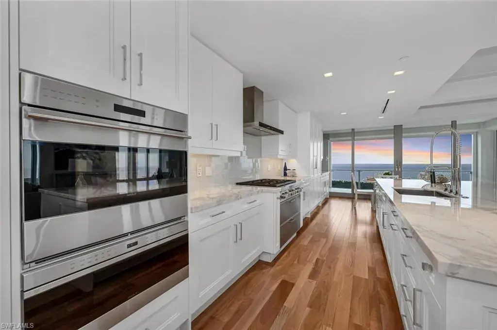 Welcome to Mystique, Pelican Bay’s most spectacular luxury high rise. Built in 2019, it boasts all the latest hurricane standards and the layout and amenities for the most discriminating buyer. From this rarely available 18th floor end unit, enjoy expansive views of the Gulf of Mexico and sunsets from floor to ceiling windows. The lanai has glass railings and automated shutters. A private elevator leads to this beautiful home with 5 bedrooms plus den and 4.5 baths. The open kitchen has gorgeous Calcutta countertops with large island, Wolf and Subzero appliances, and white shaker cabinets. The great room has both formal and informal dining, a separate living room with a free-standing fireplace, Brazilian hardwood floors and coffered ceilings. The master bath has marble tile, dual sinks, separate tub and shower, and walk-in closets. Mystique provides concierge services and 24-hour staff. Building amenities include: pool/spa, social rooms, billiards, spa suites, board room, fitness, two tennis courts, movie theater, and guest suites. Take a private tram to Pelican Bay’s two exclusive beach restaurants. Act fast as this gem won’t last!